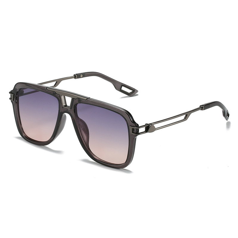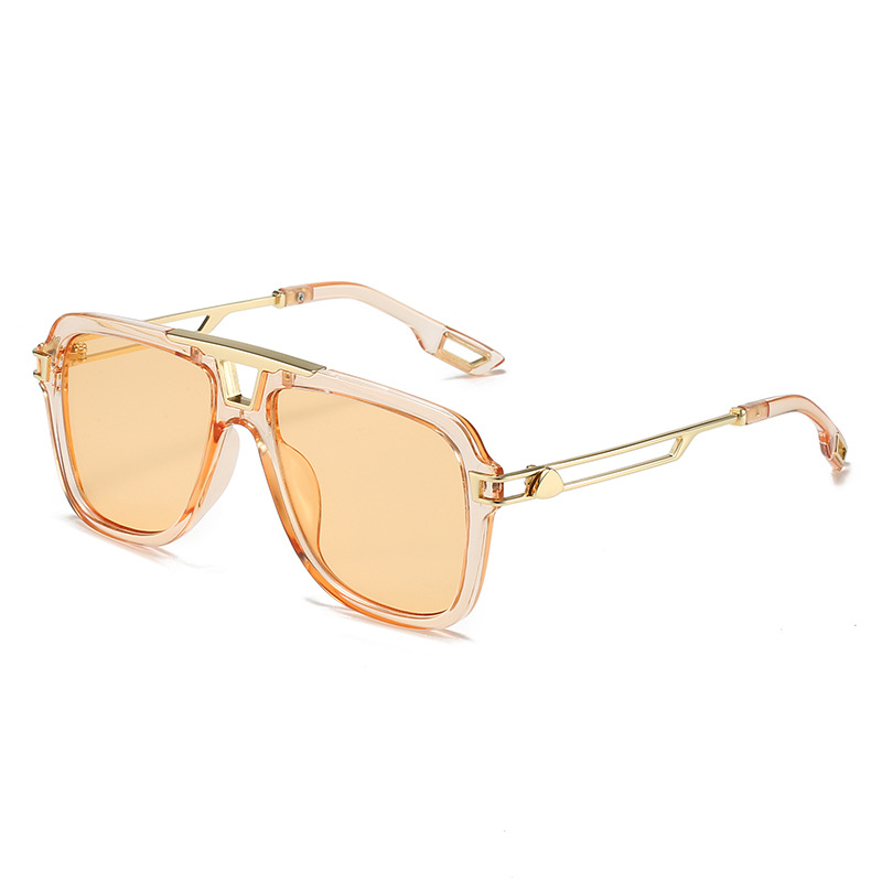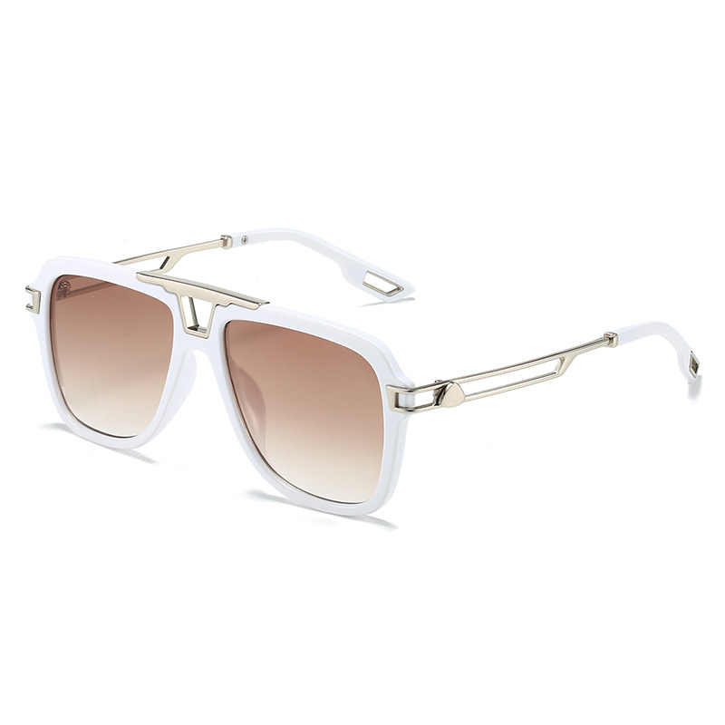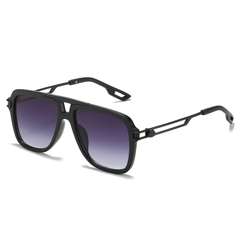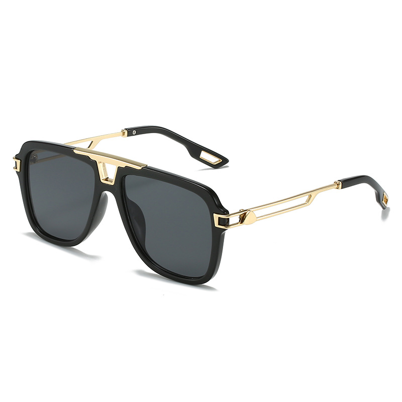2022新款欧美太阳眼镜 文艺方框横梁遮阳镜防晒镂空金属腿墨镜女