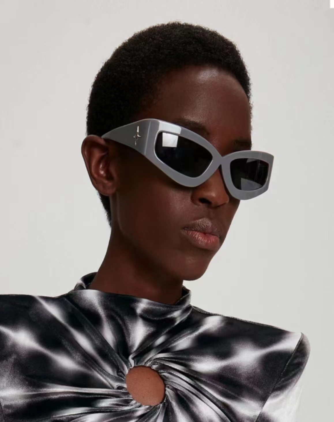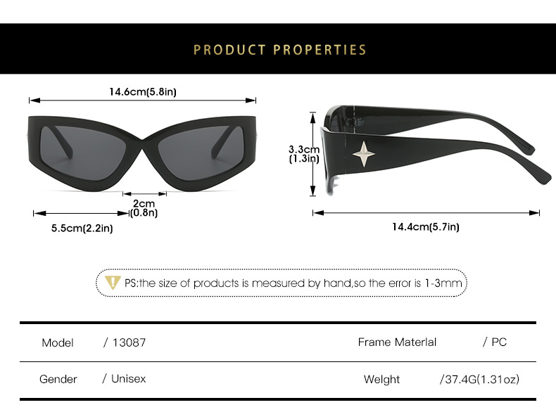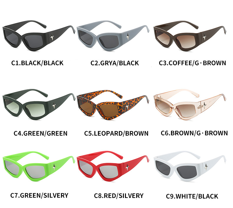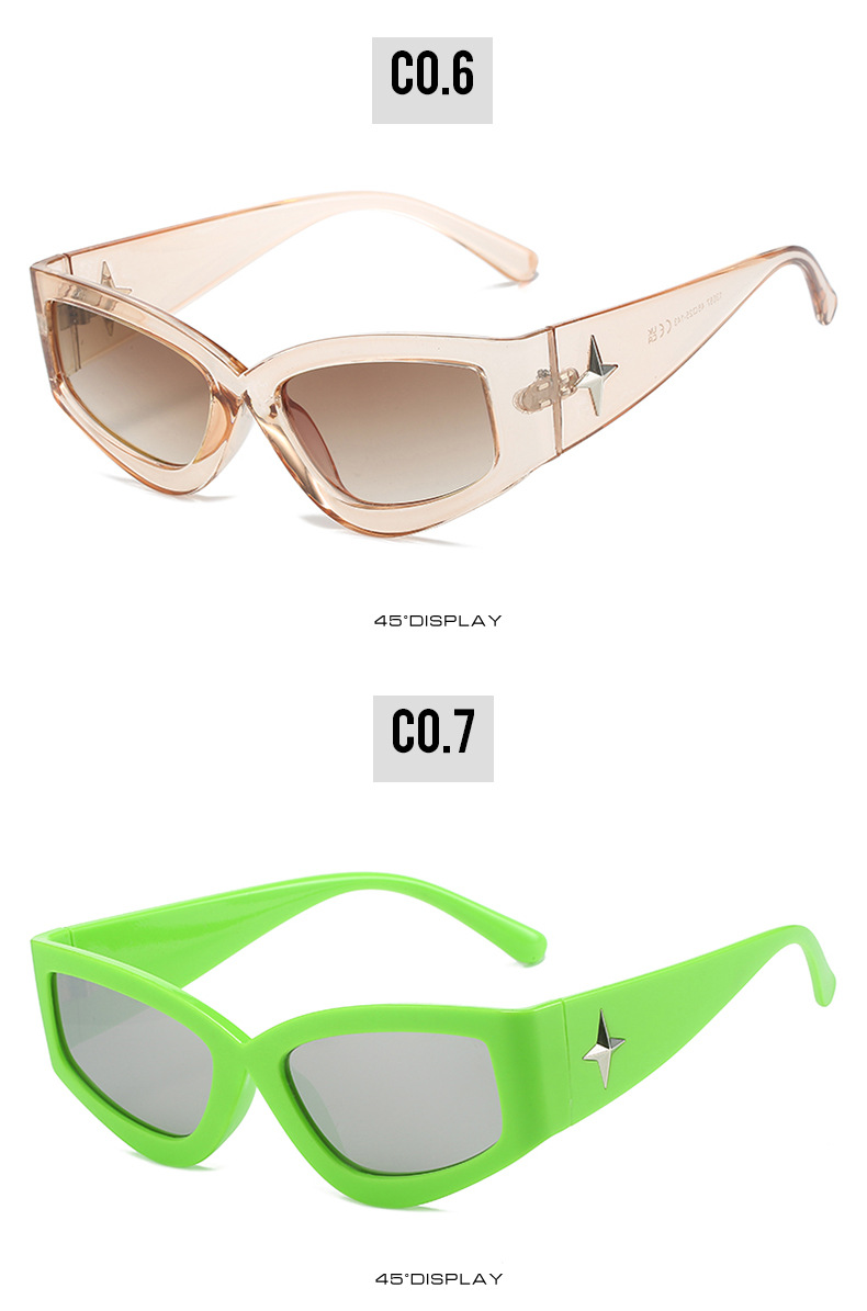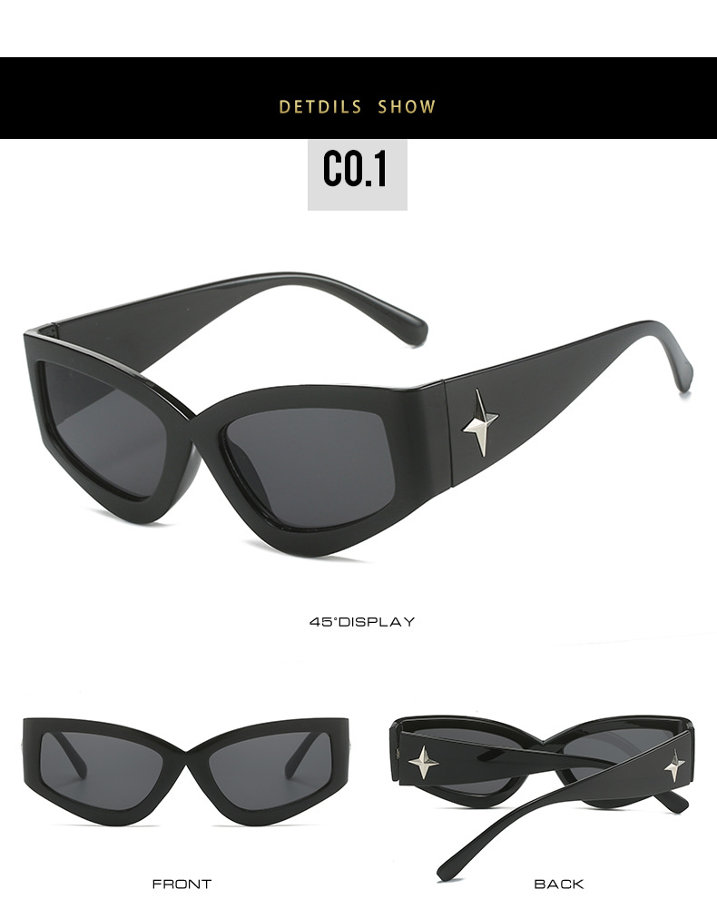 2023跨境个性猫眼太阳镜 欧美时尚十字星星网红Ins同款嘻哈墨镜