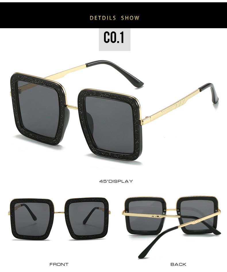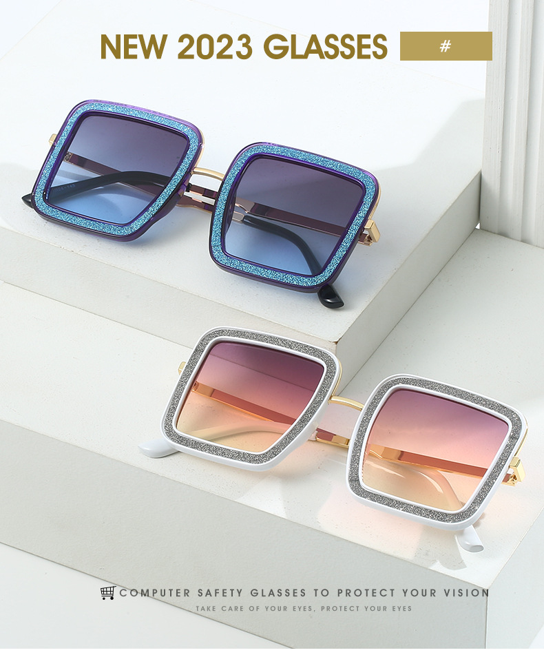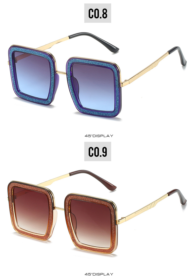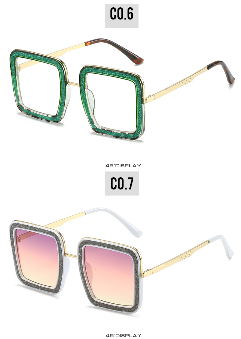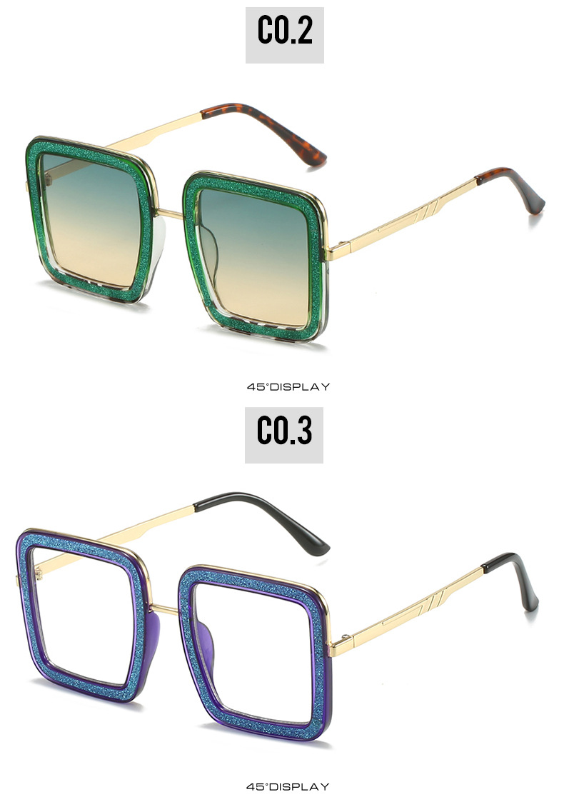 2023跨境新款方框太阳镜 欧美时尚街拍方形金属眼镜 个性炫彩墨镜