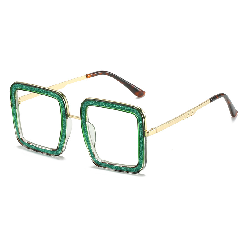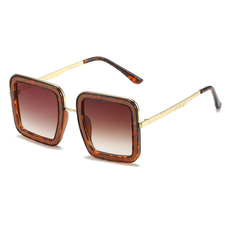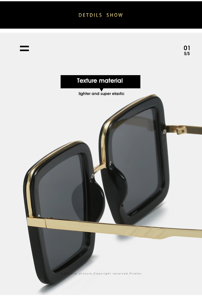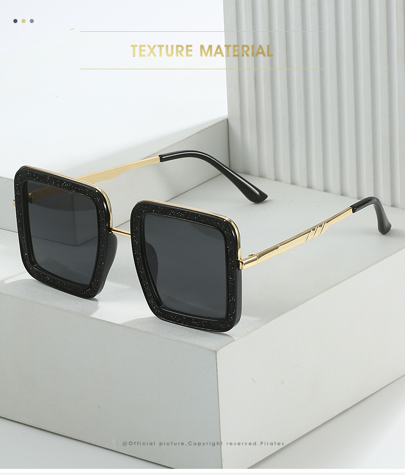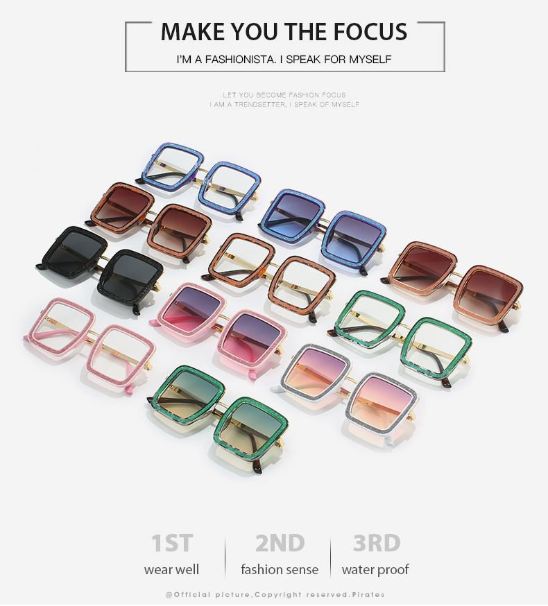 2023跨境新款方框太阳镜 欧美时尚街拍方形金属眼镜 个性炫彩墨镜