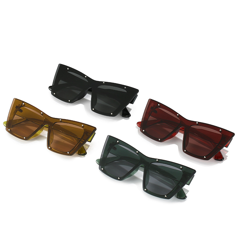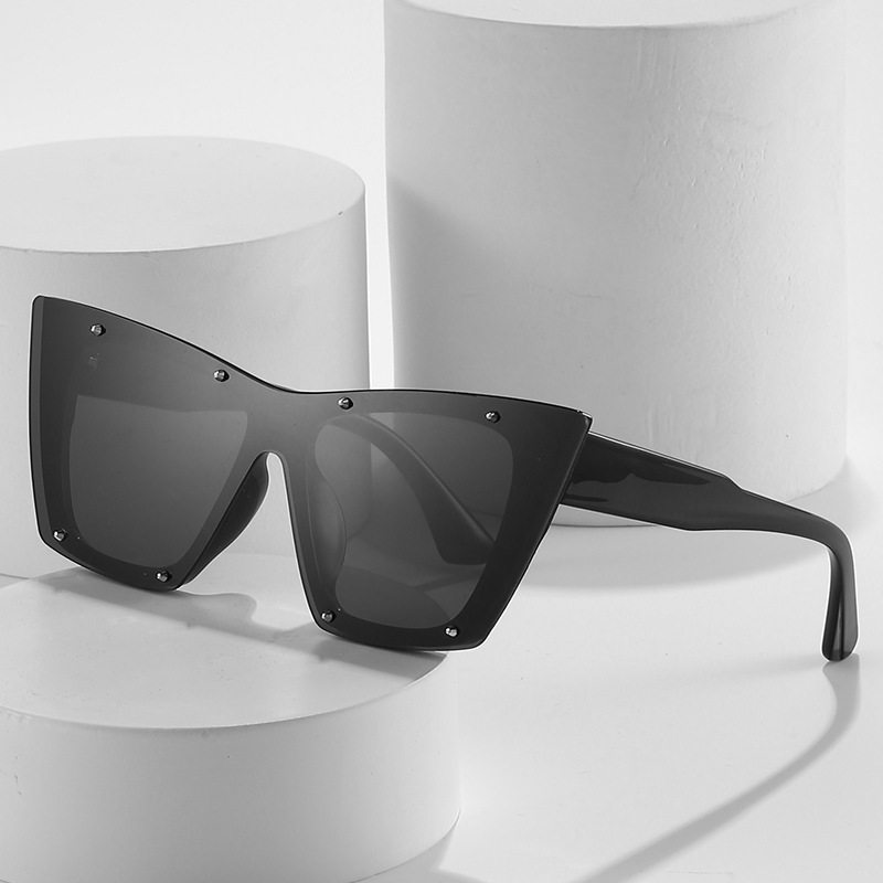 2022新款猫眼太阳镜 欧美个性一体大框铆钉眼镜时尚连体ins墨镜女