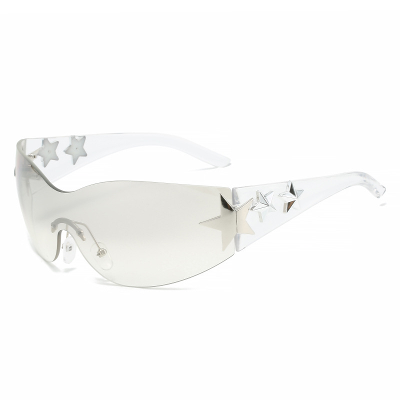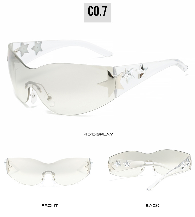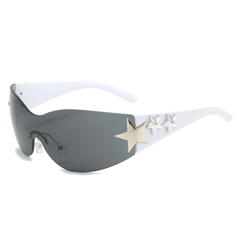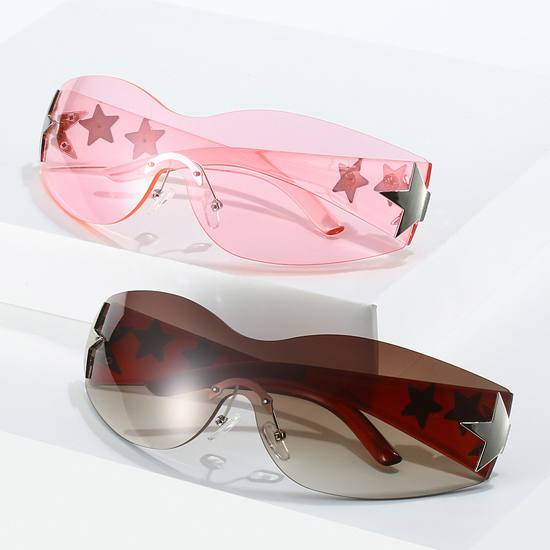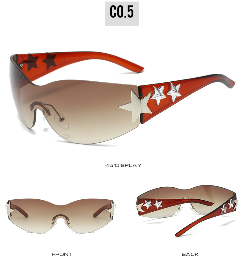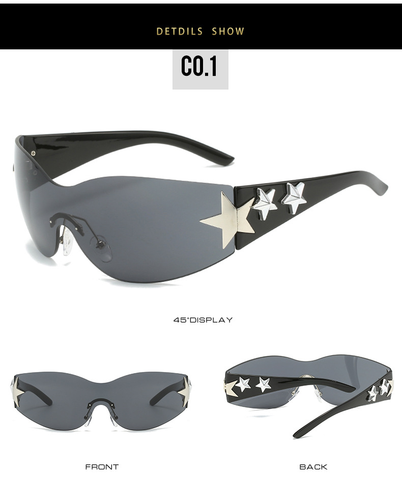 2023新款五角星太阳镜Y2K无框连体太阳眼镜大框嘻哈街拍个性墨镜