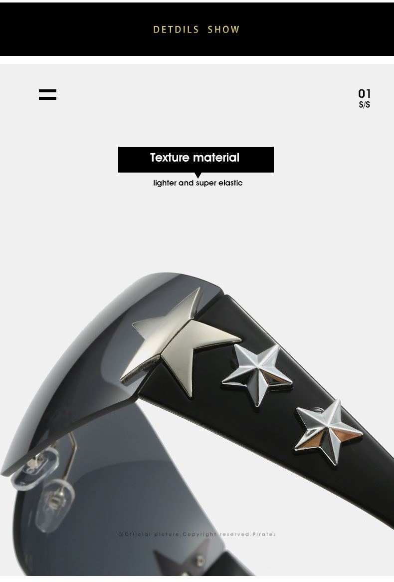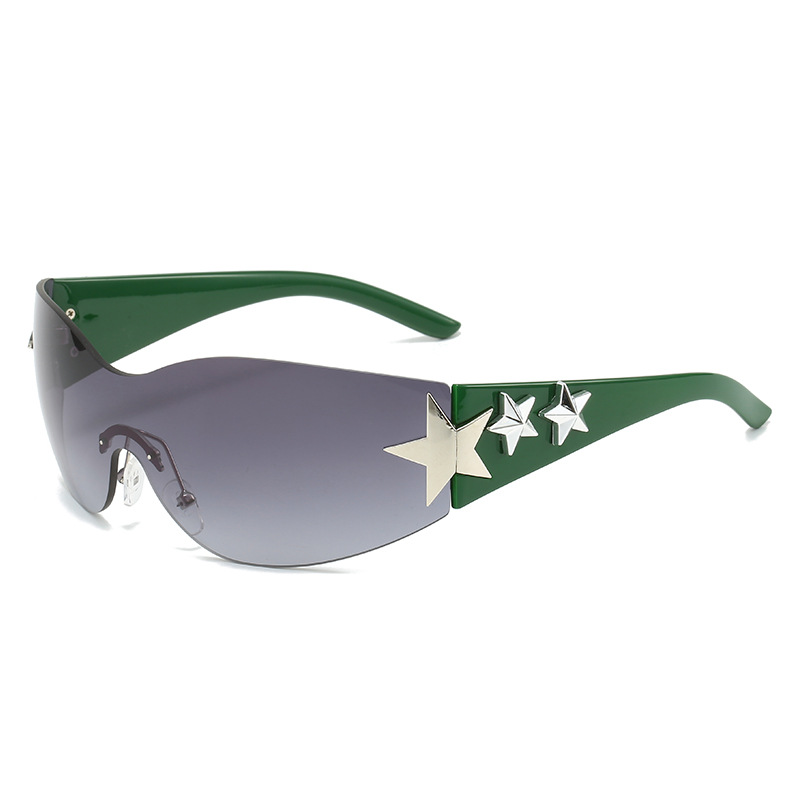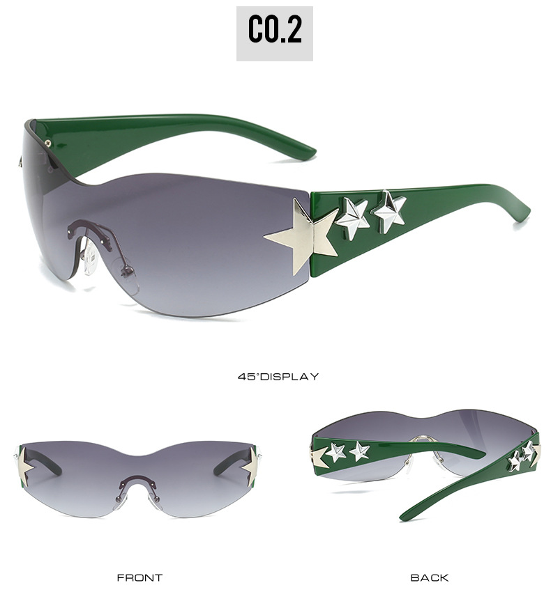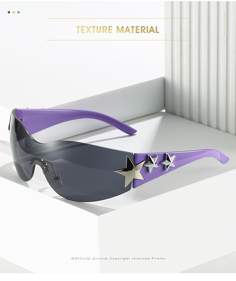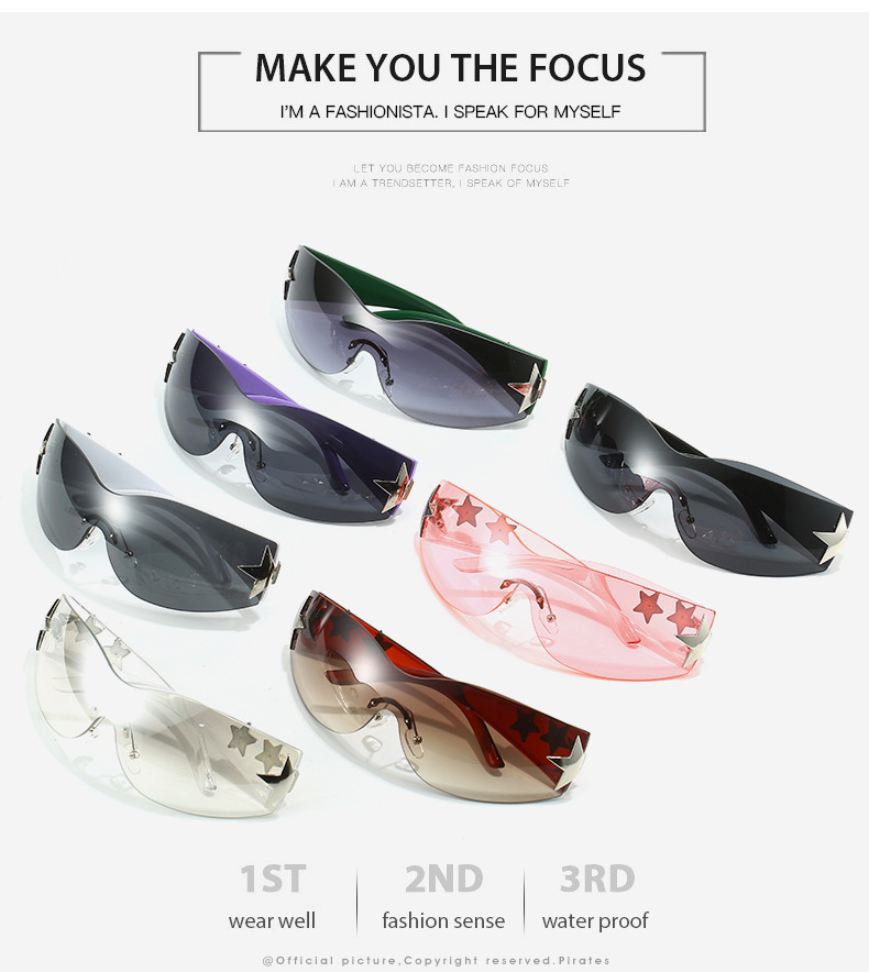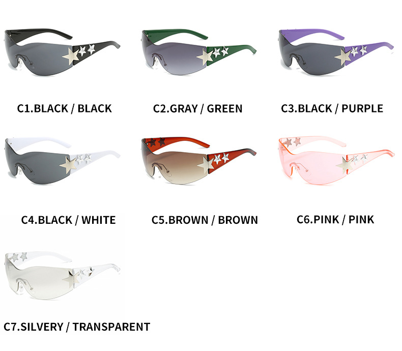 2023新款五角星太阳镜Y2K无框连体太阳眼镜大框嘻哈街拍个性墨镜
