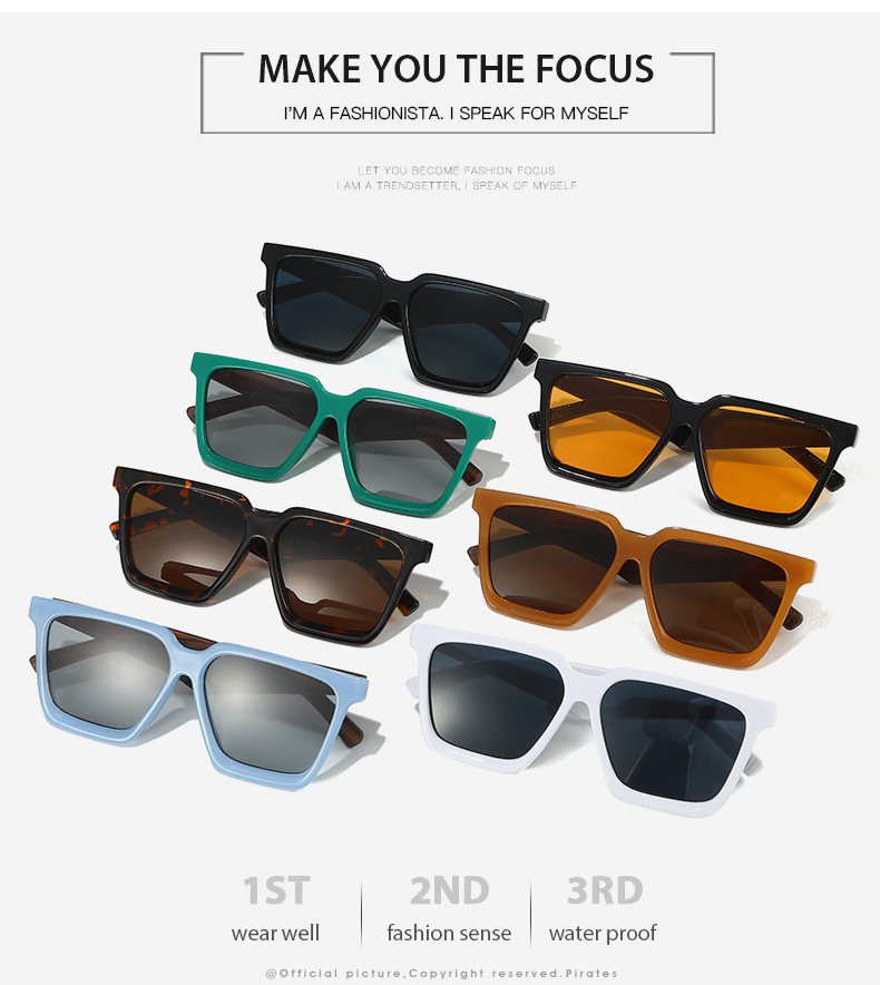 2023跨境新款方框太阳镜 欧美时尚简约大框复古街拍休闲风墨镜女