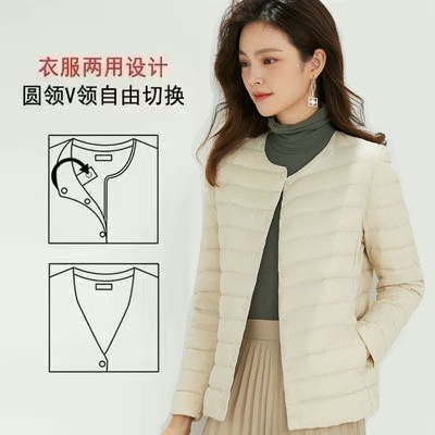 轻薄羽绒服女短款2023年新款90白鸭绒内胆外穿内搭圆领保暖大码外