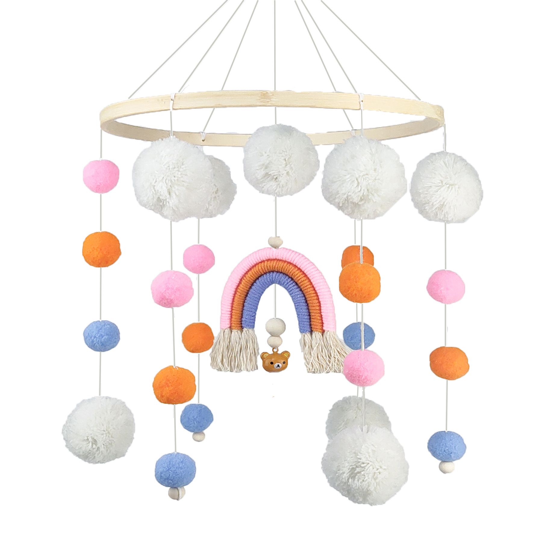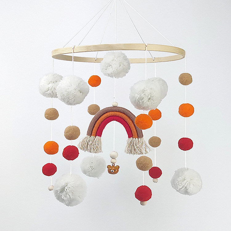跨境ins北欧风彩虹手编织风铃摇铃玩具拍照道具婴儿童房挂件装饰