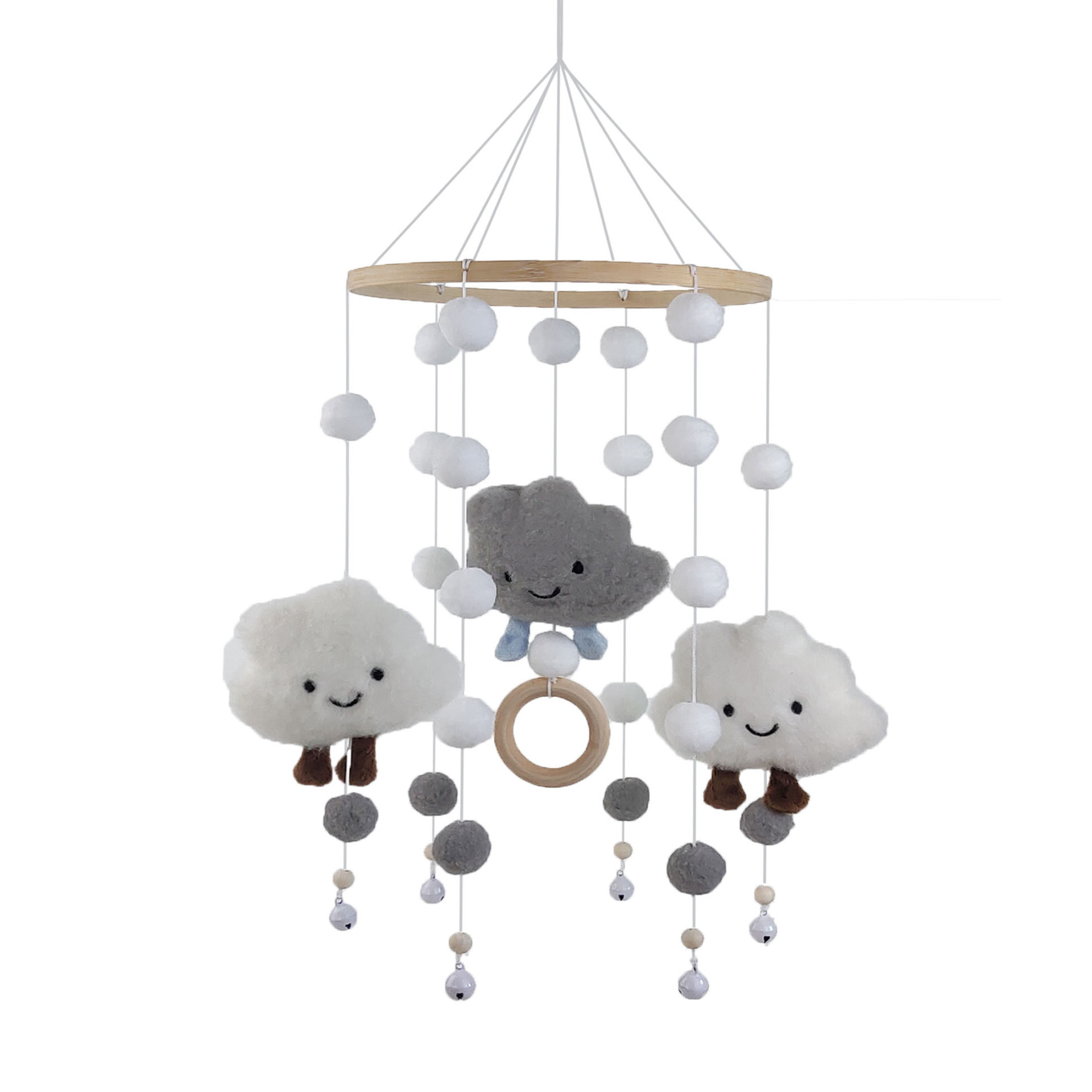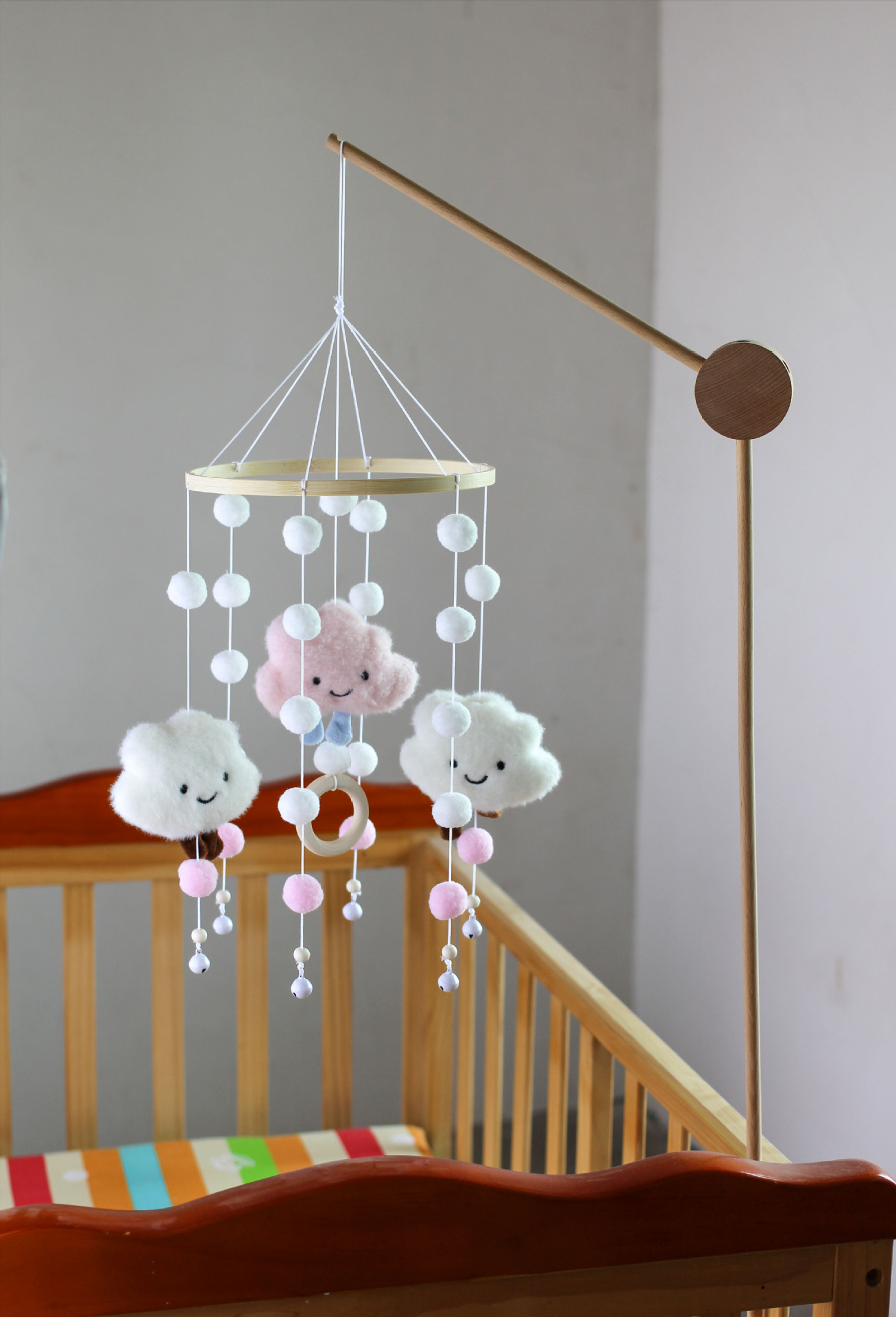 跨境云朵毛球风铃床铃婴儿床装饰挂件儿童房间壁饰挂饰幼儿墙饰