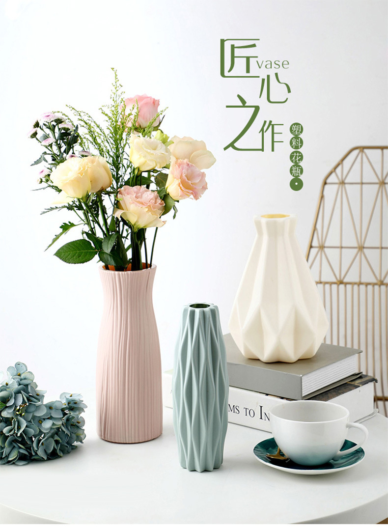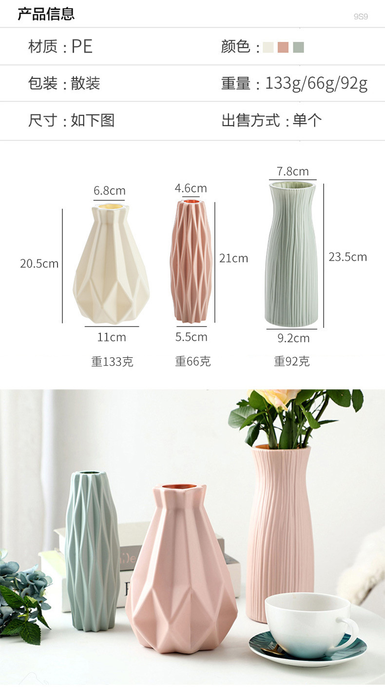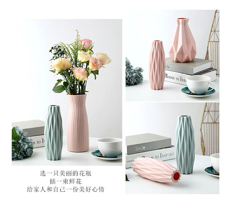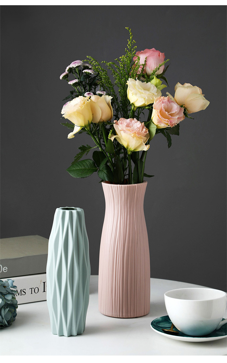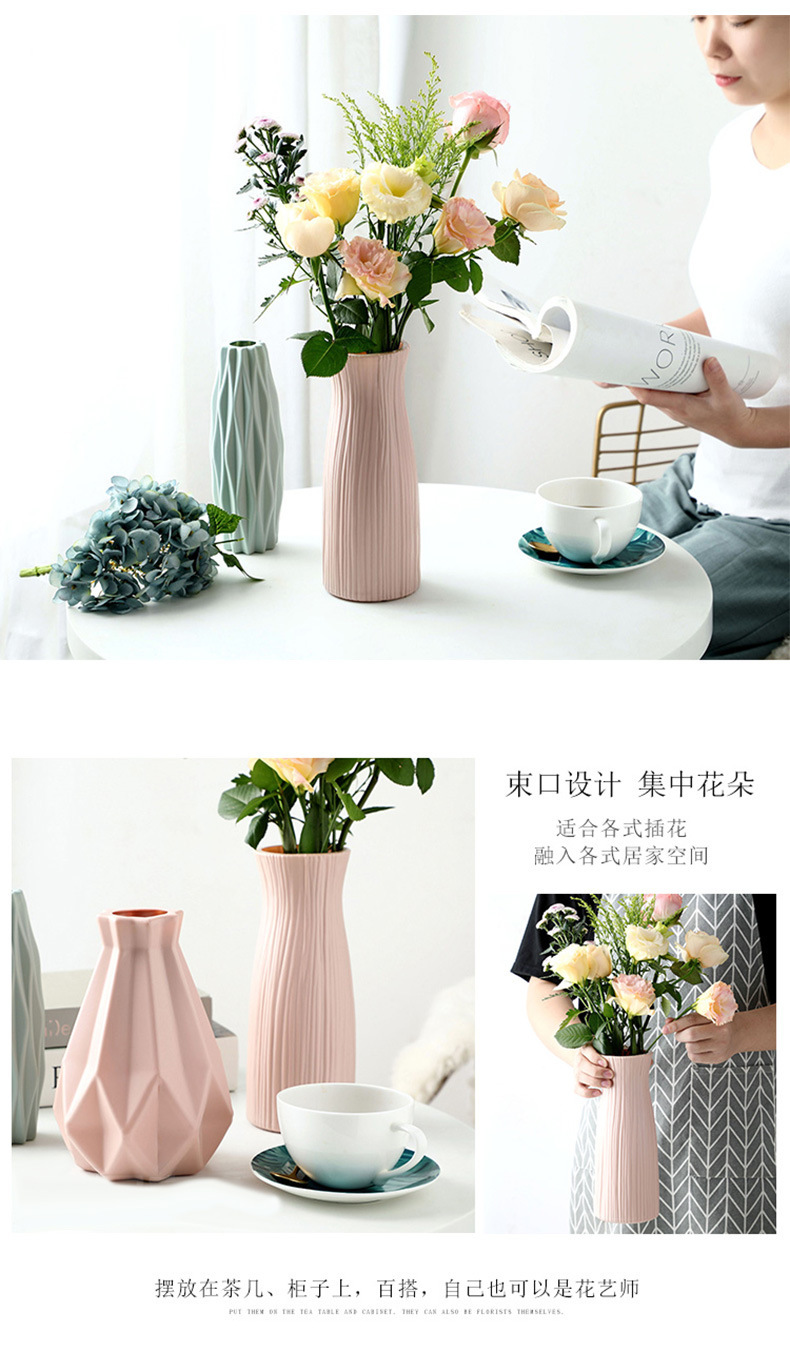 仿陶瓷花瓶欧式塑料花瓶莫兰迪客厅摆件花瓶水培创意插花瓶批发