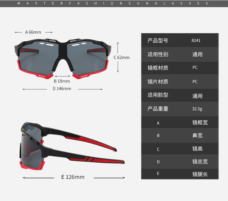 跨境新款户外运动太阳镜男女自行车墨镜时尚炫彩偏光骑行眼镜批发