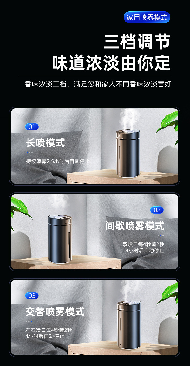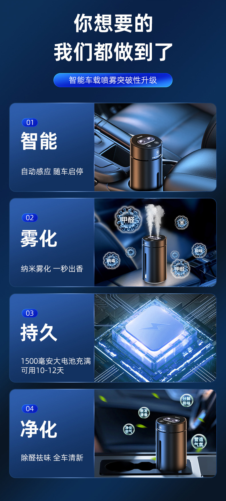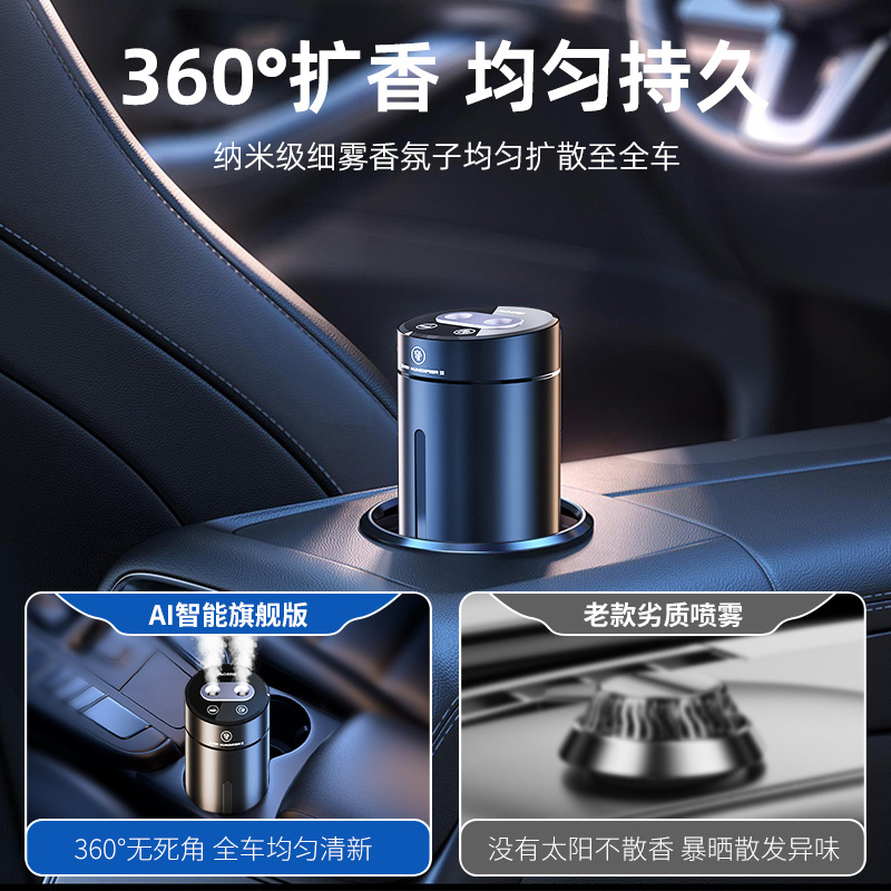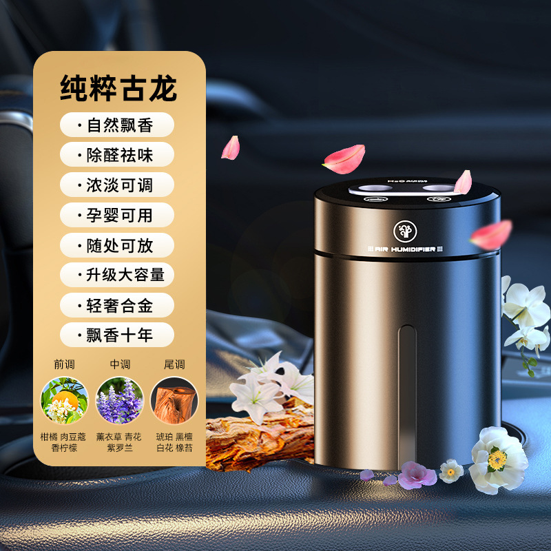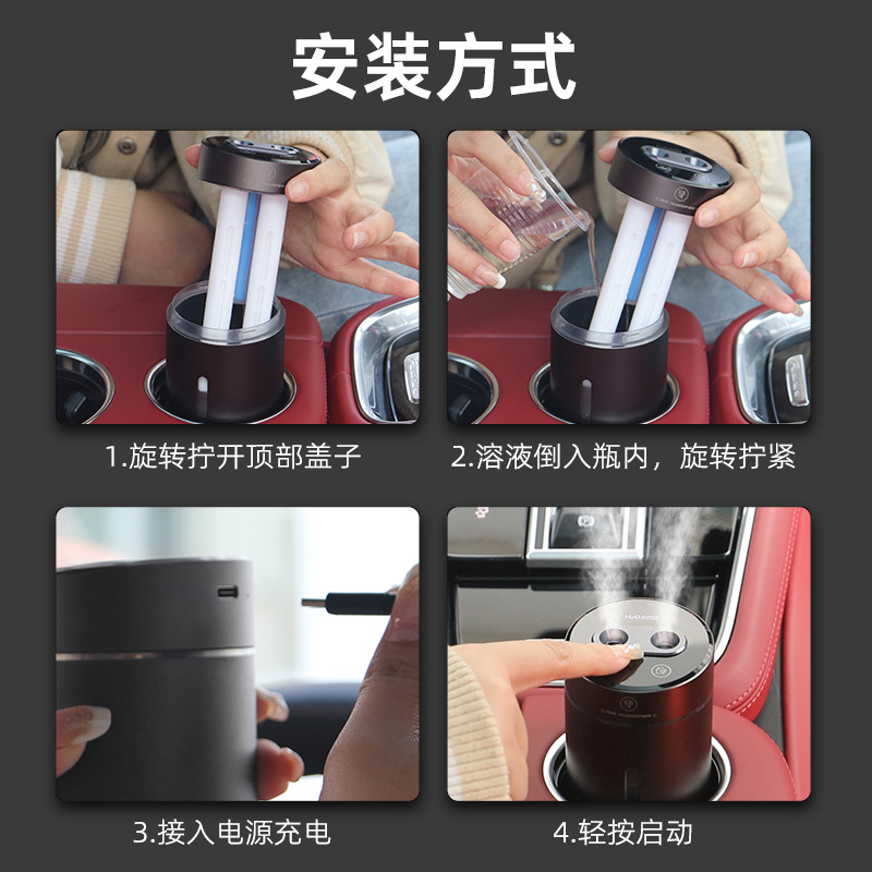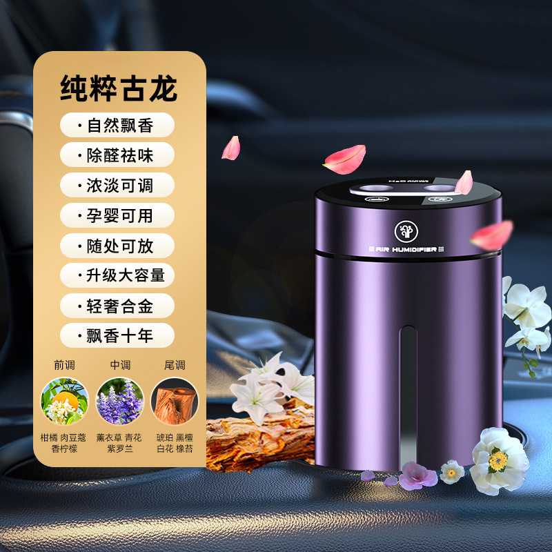 新款智能车载加湿器 双喷口出雾随车启动内置电池喷雾香薰机跨境
