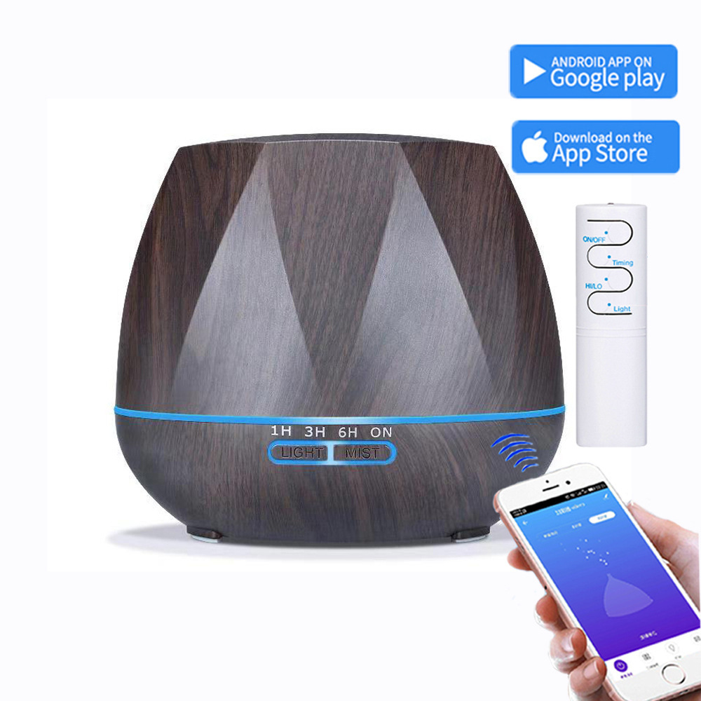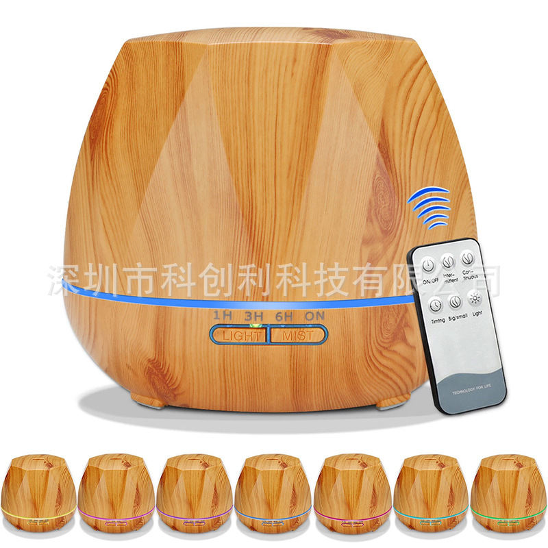 550ML菱形八角木纹超声波遥控香薰机创意新颖家用补水空气插头款