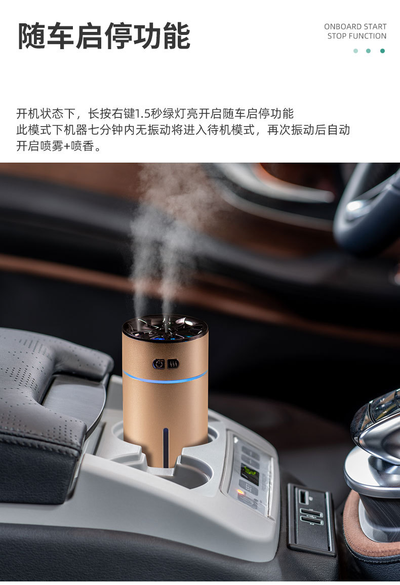 新品双喷车载香薰机 自动启停家用七彩迷你大雾量便携车载加湿器