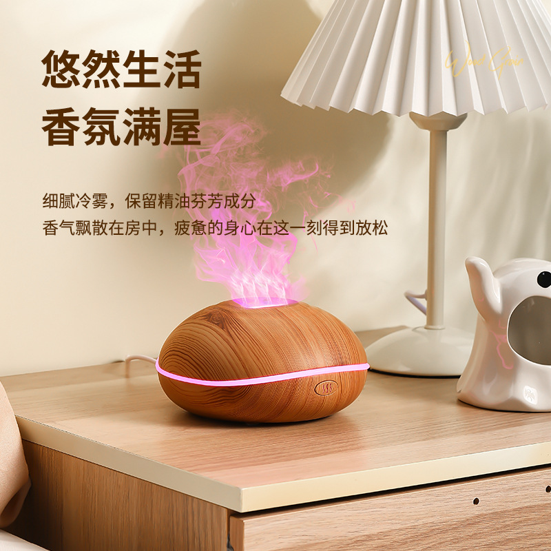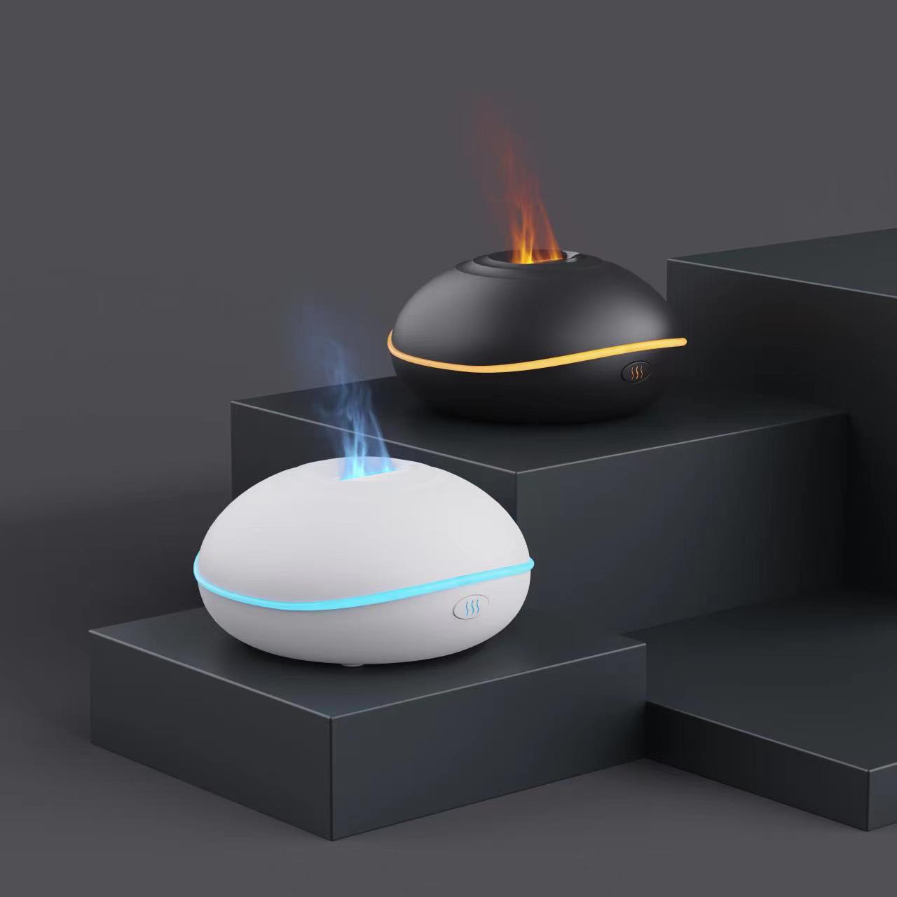 新款跨境创意精油扩香机家用办公台式七彩加湿火焰香熏机diffuser