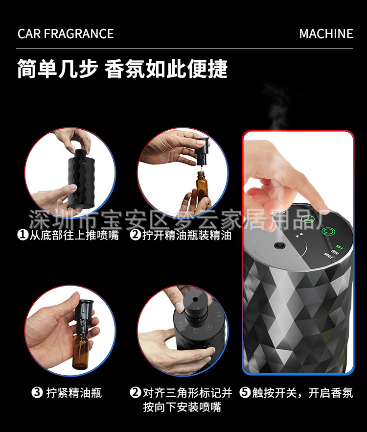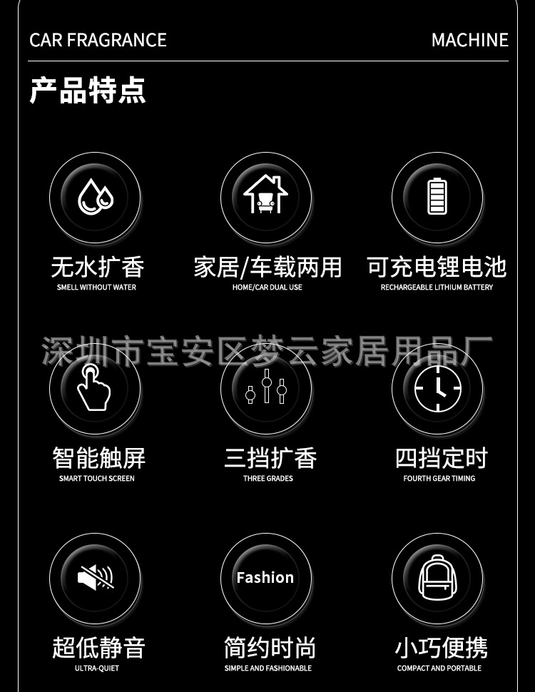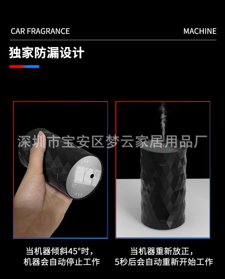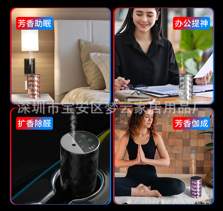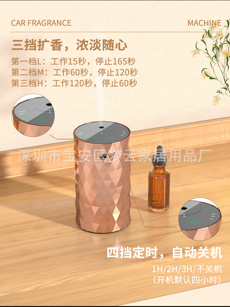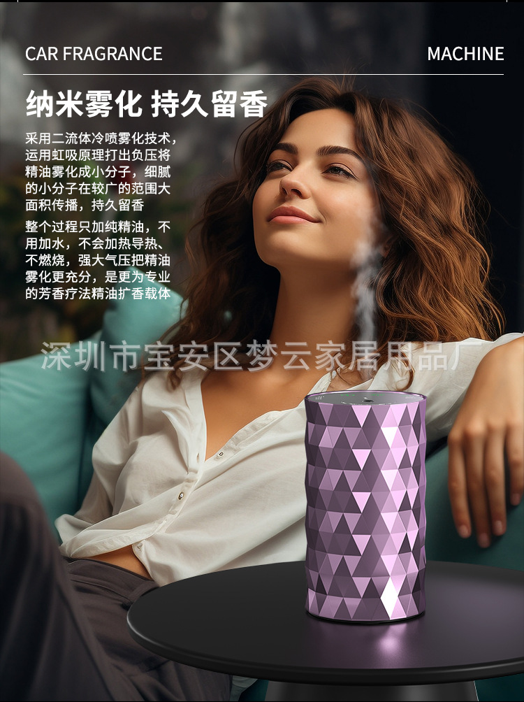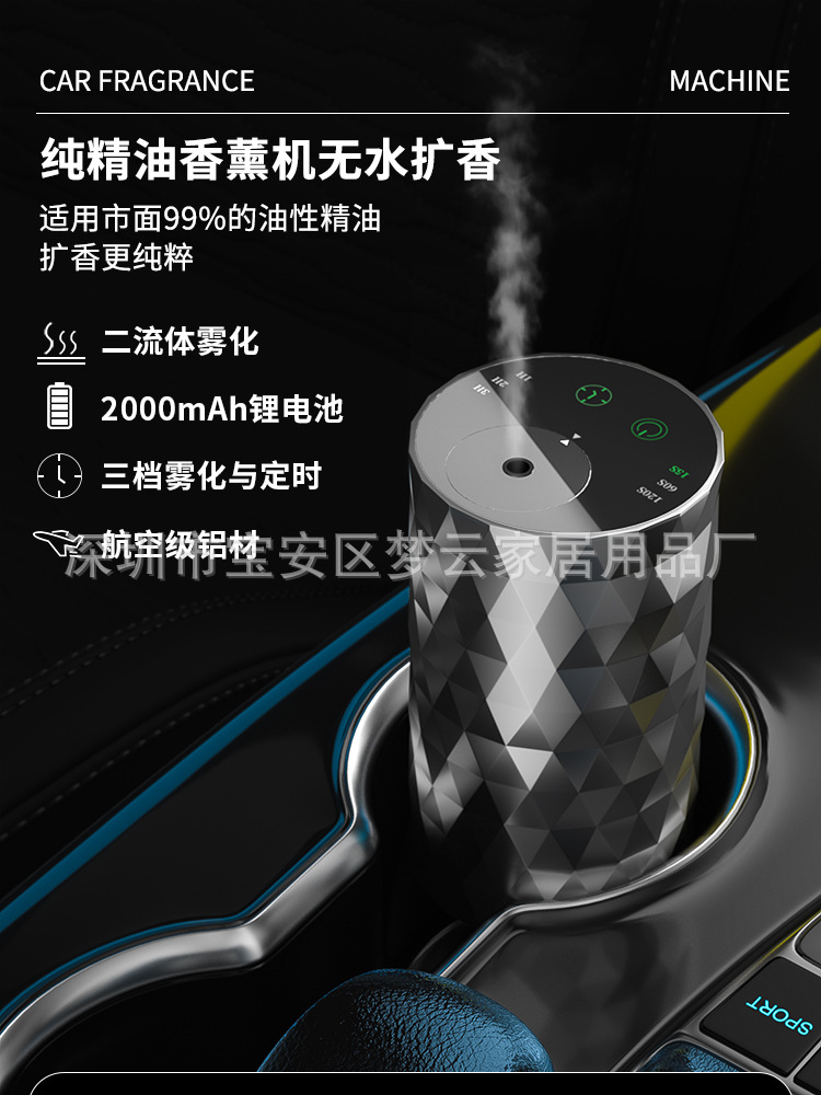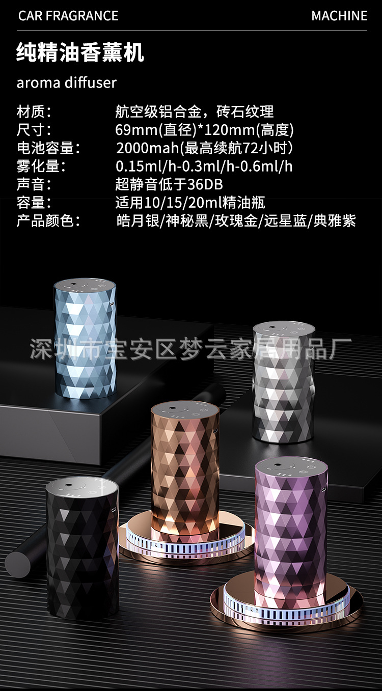 铝合金砖石纹车载香薰机无水精油扩香仪家用静音香氛机便携扩香机