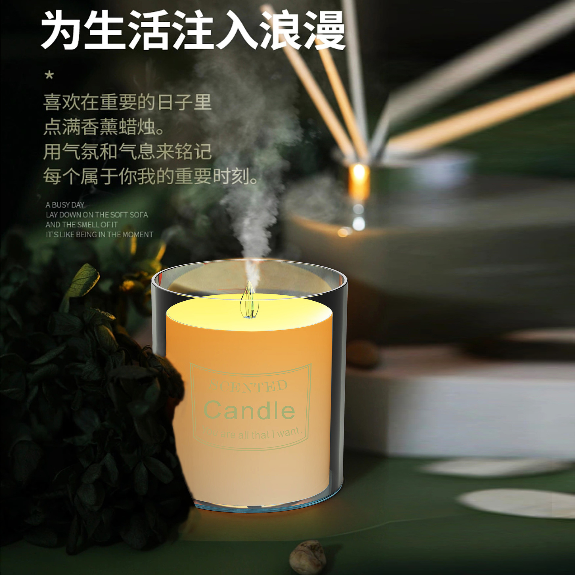 23年新款蜡烛香薰机精油跨境家用卧室桌面加湿扩香火焰烛光香薰机