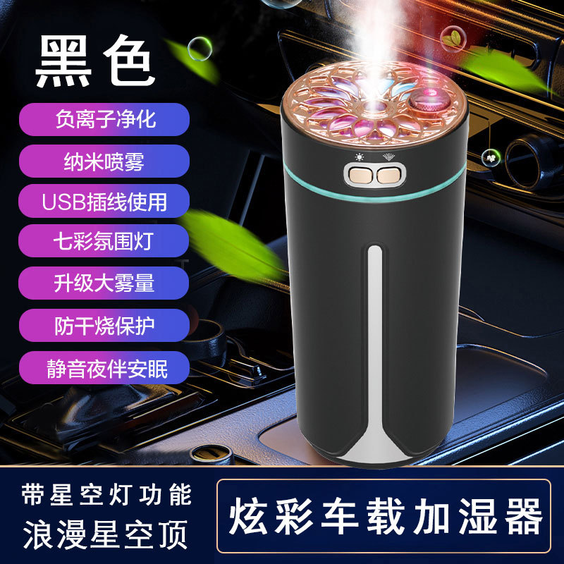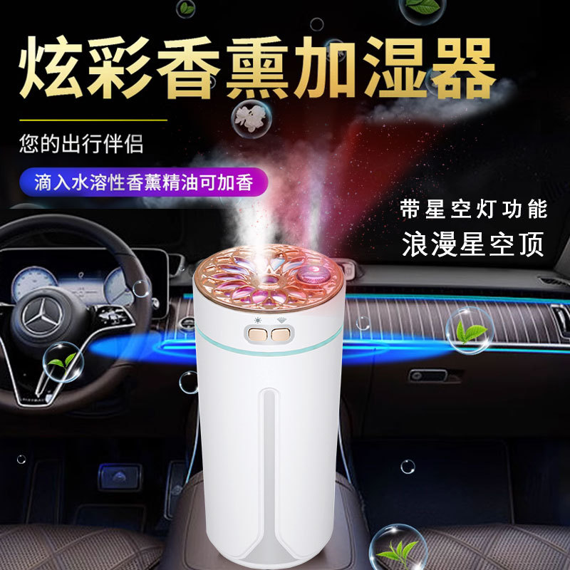 跨境创意新款车载加湿器香薰喷雾车内香薰机七彩星空灯家用香薰机