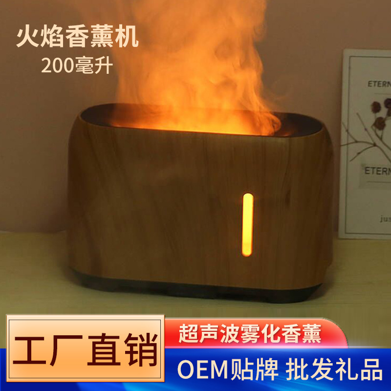 工厂定制新款精油仿真火焰香薰机 木纹大雾量卧室灯光加湿香薰机