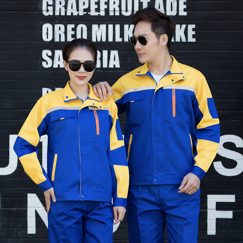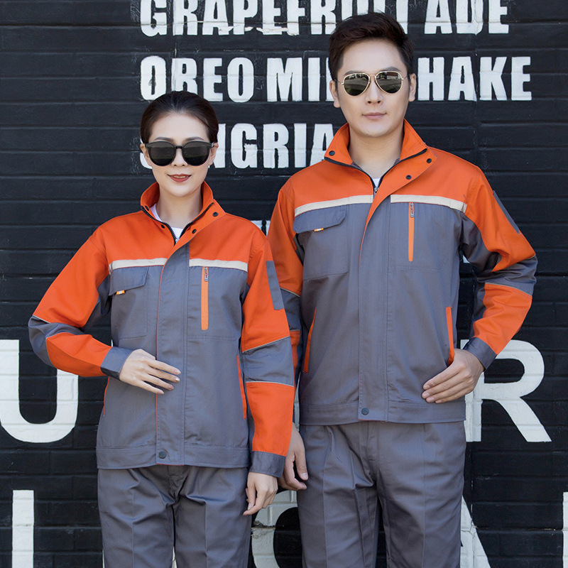 秋冬款涤丝工作服套装耐磨耐穿透气反光条工地车间汽修劳保服定制