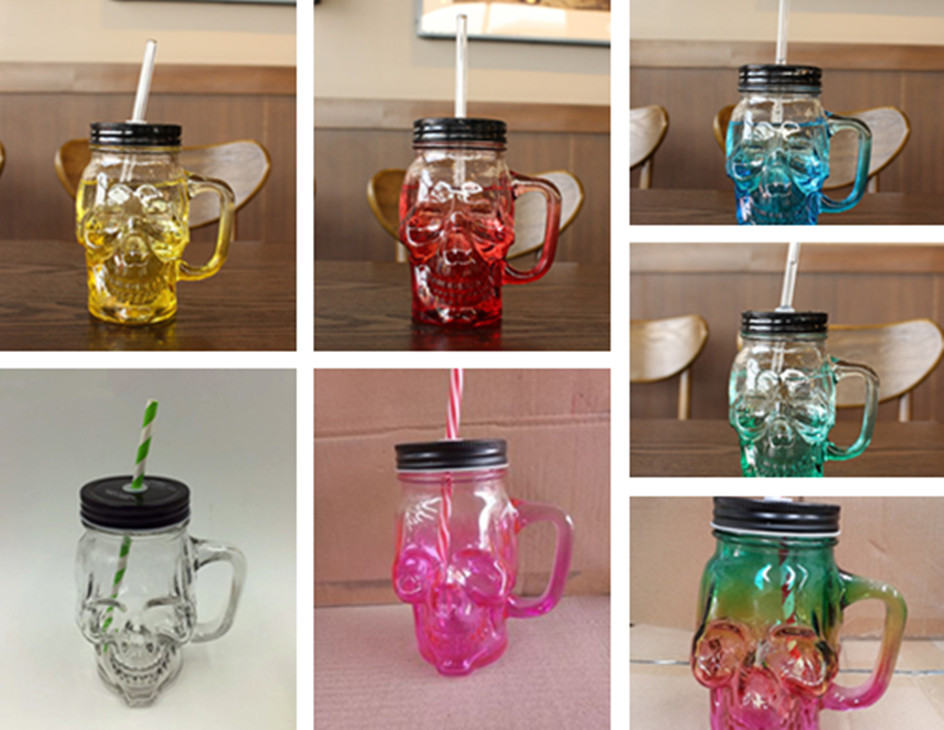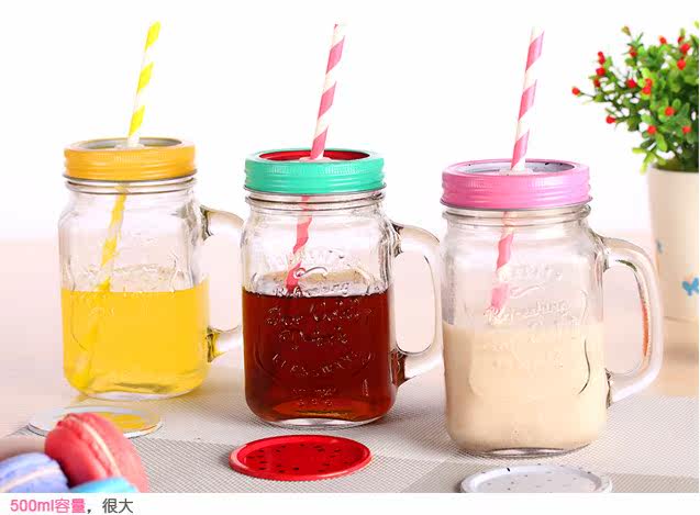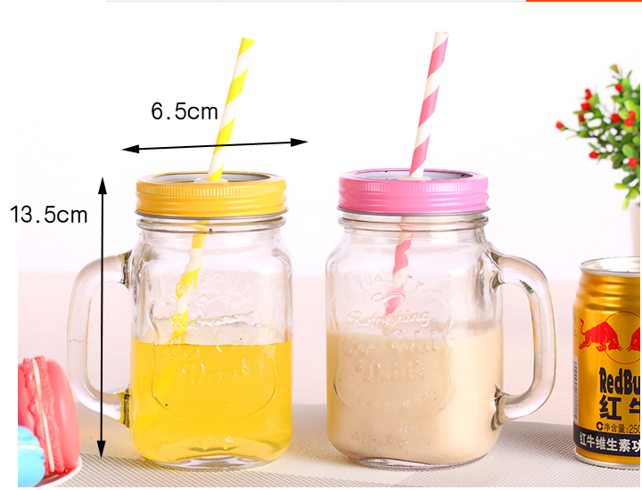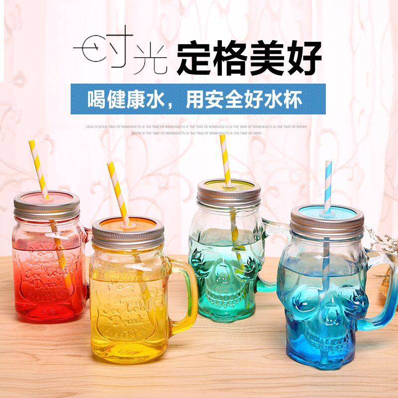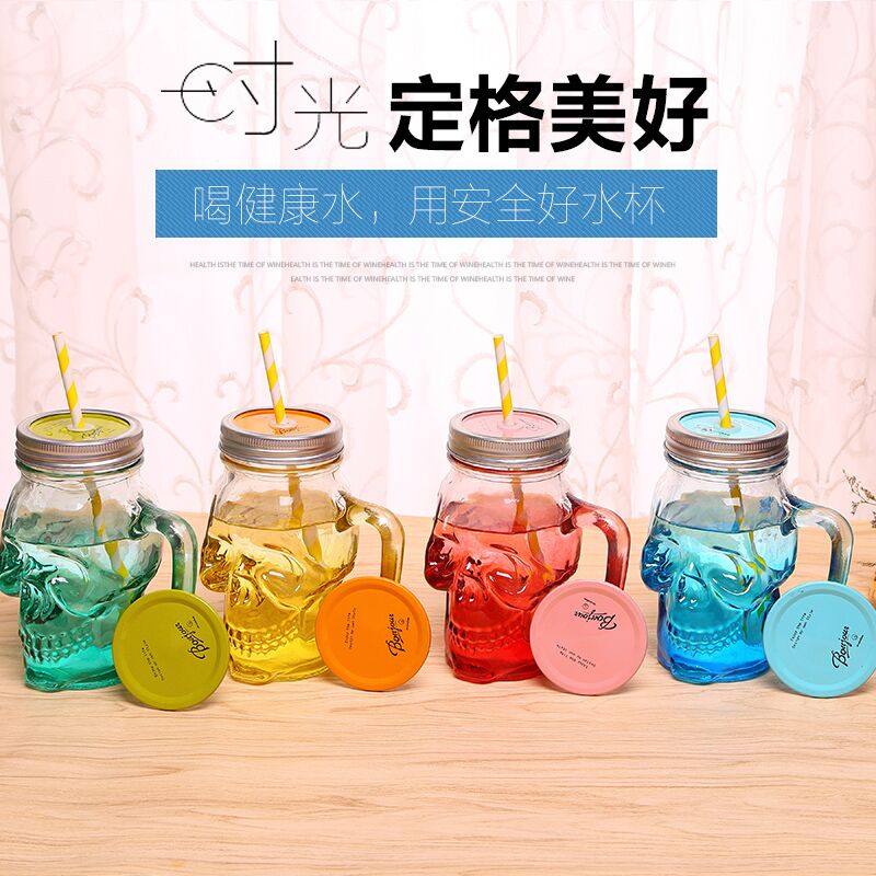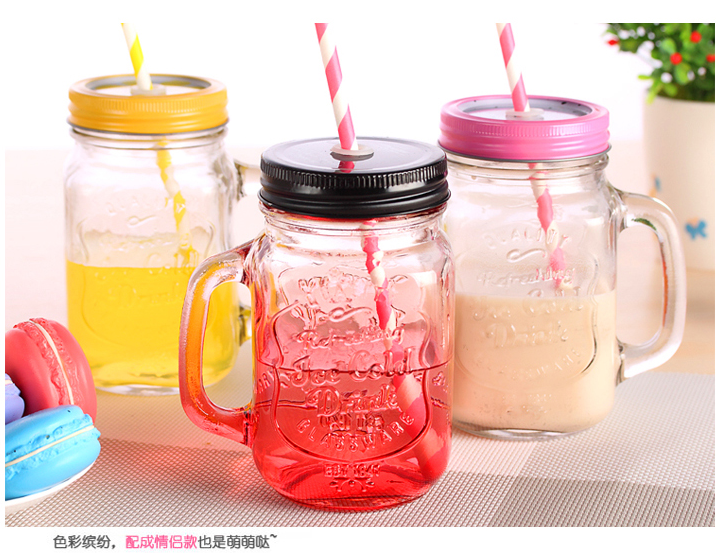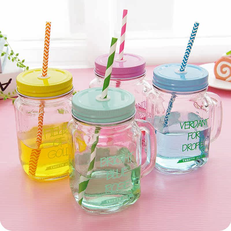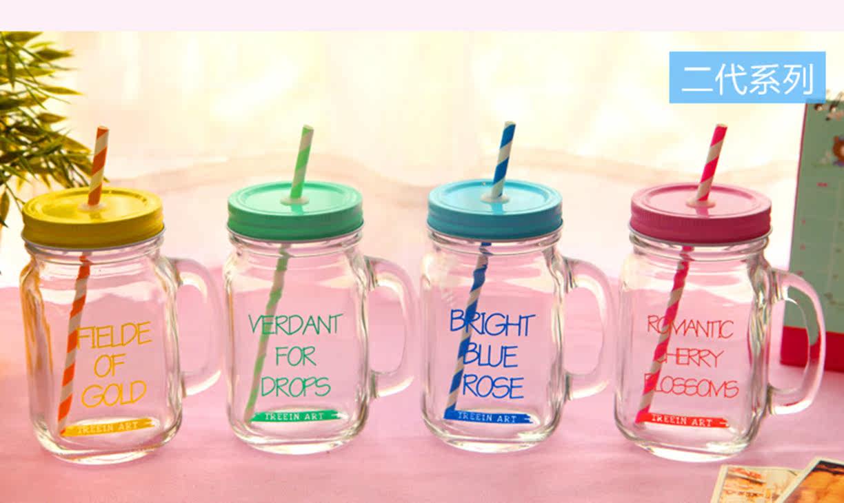 韩国创意吸管梅森杯个性情侣彩色柠檬果汁饮料玻璃水杯带盖公鸡杯