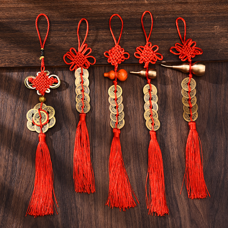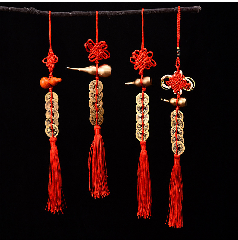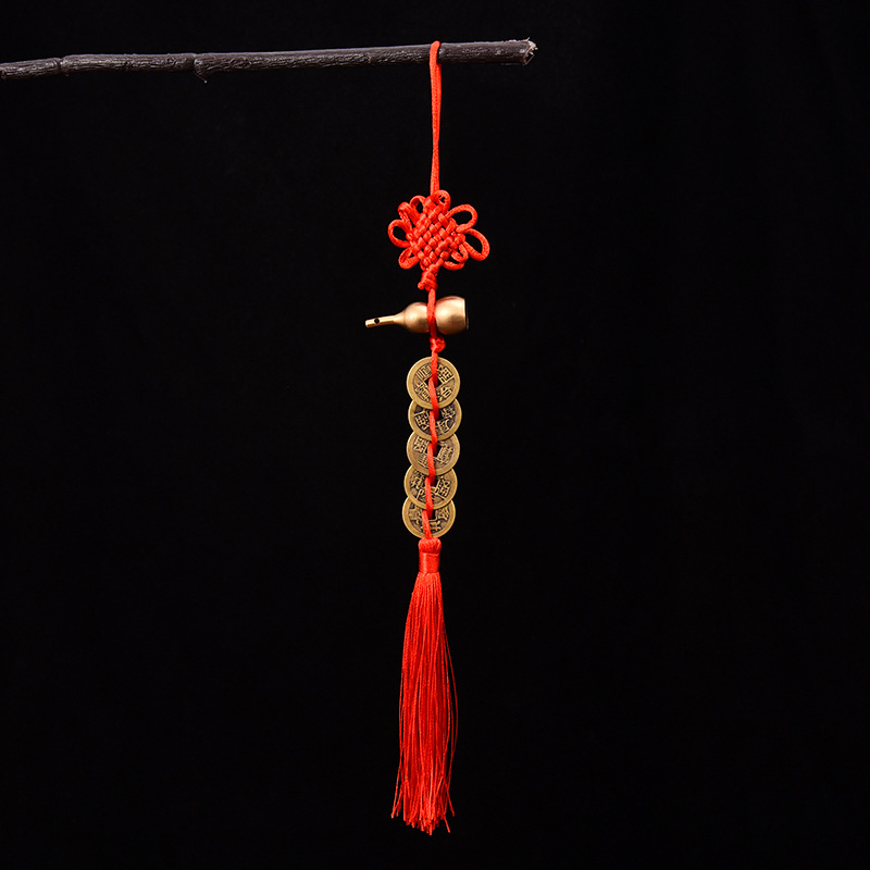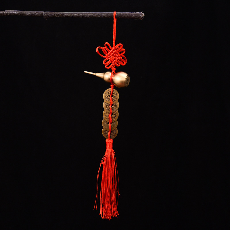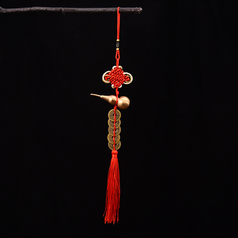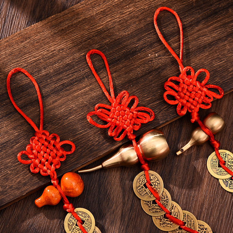 五帝钱挂件葫芦批发纯铜中国结门对门葫芦串压门框厕所吉祥结挂件