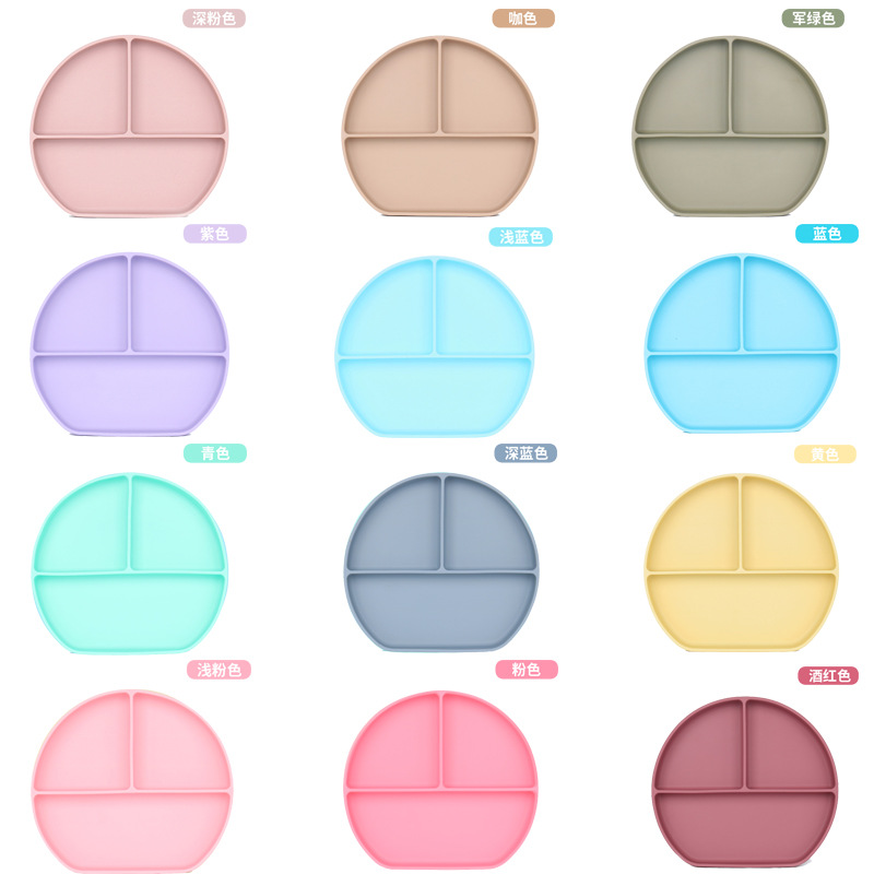 婴儿硅胶分割餐盘笑脸宝宝硅胶餐具母婴用品儿童吸盘硅胶餐具套装