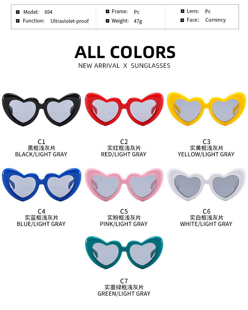 女士个性心形太阳镜搞怪派对时尚太阳镜批发欧美新款爱心桃心墨镜