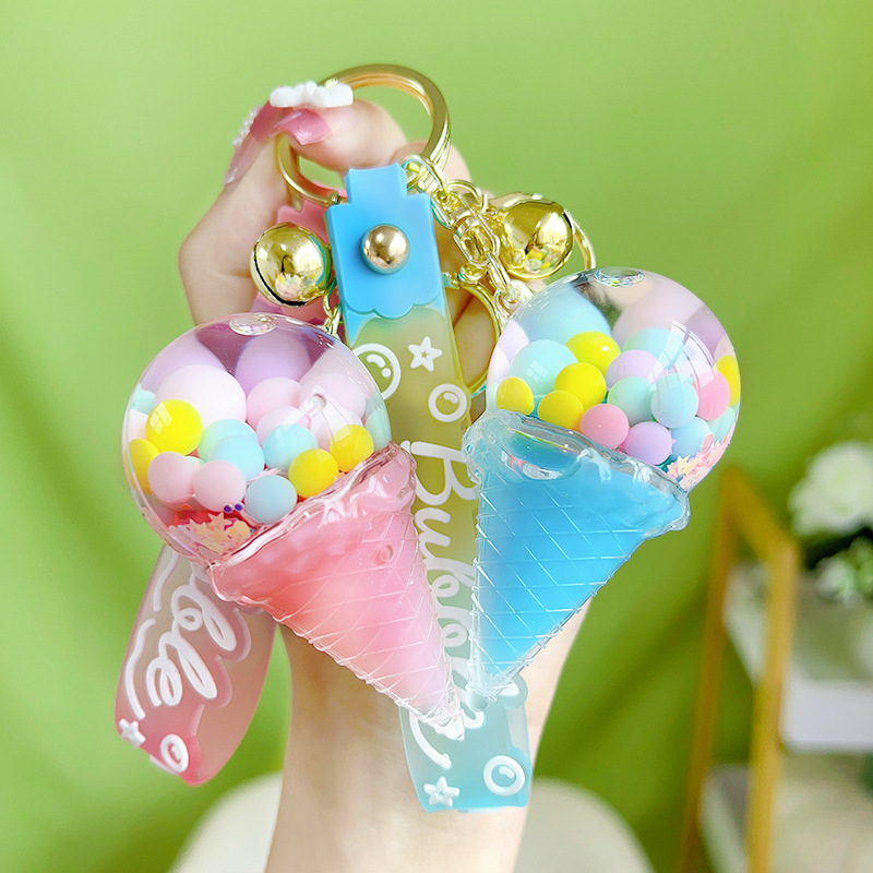 亚克力夜光入油糖豆冰激凌钥匙扣汽车挂件漂浮流沙情侣包包钥匙链