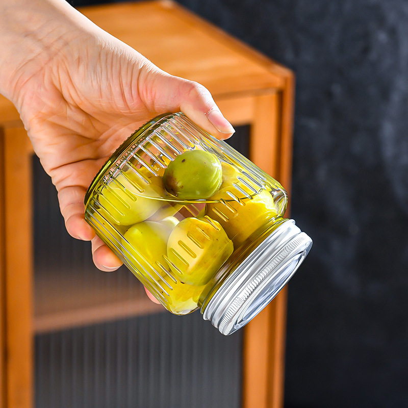 竖纹玻璃密封罐梅森瓶玻璃储物罐大号罐头空瓶无铅玻璃瓶鲜炖