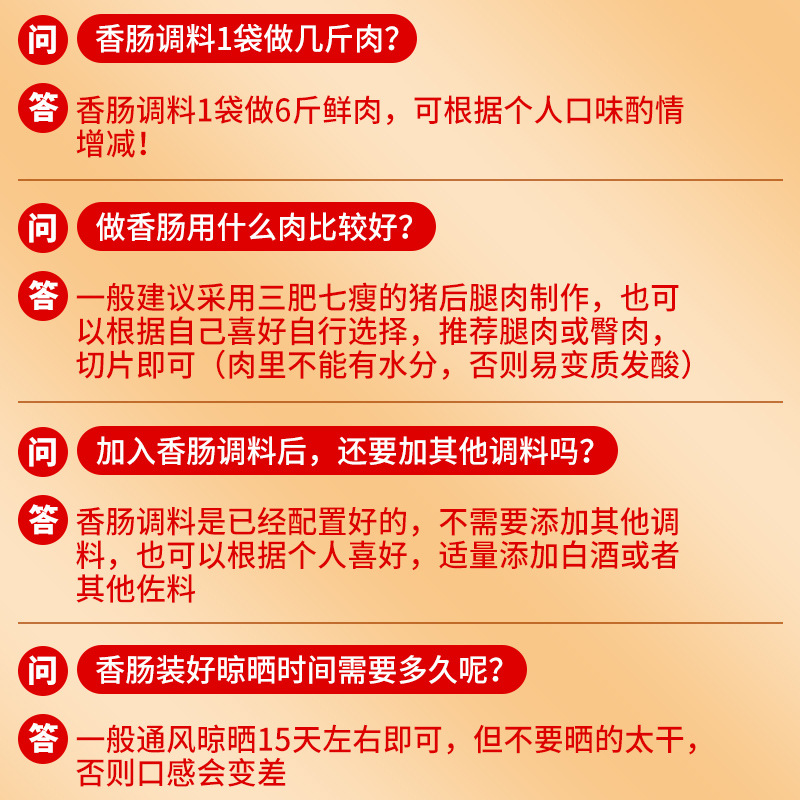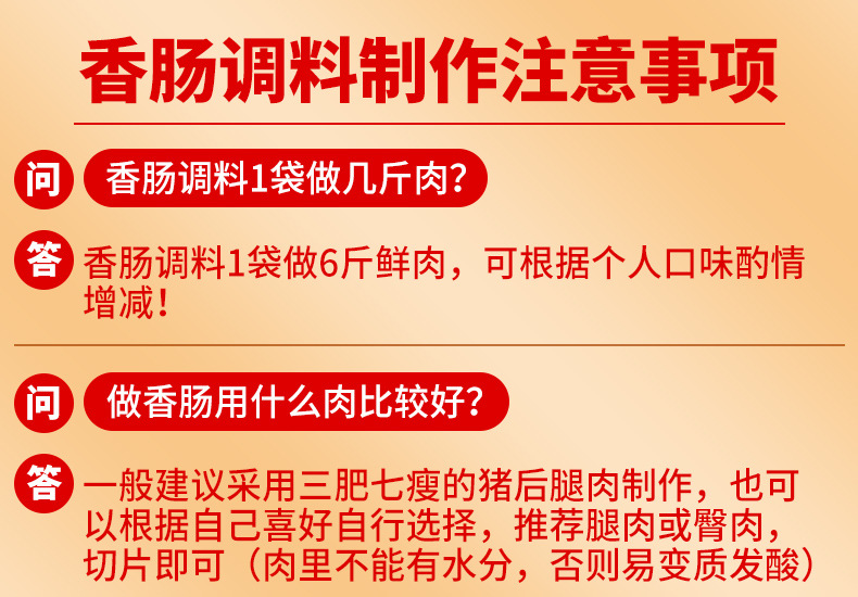 | sausage seasoning [spiced flavor] 200g (80 bags in a whole box)(香肠调料【五香风味】200g(整箱80袋)) | USD $0.86 | 17908 bag available |