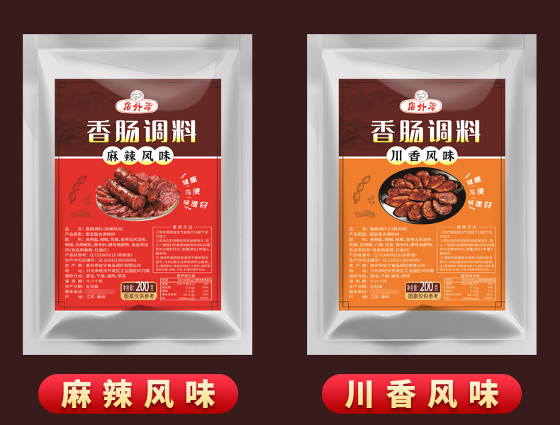 | sausage seasoning [spicy flavor] 200g (80 bags in a box)(香肠调料【麻辣风味】200g(整箱80袋)) | USD $0.86 | 17842 bag available |