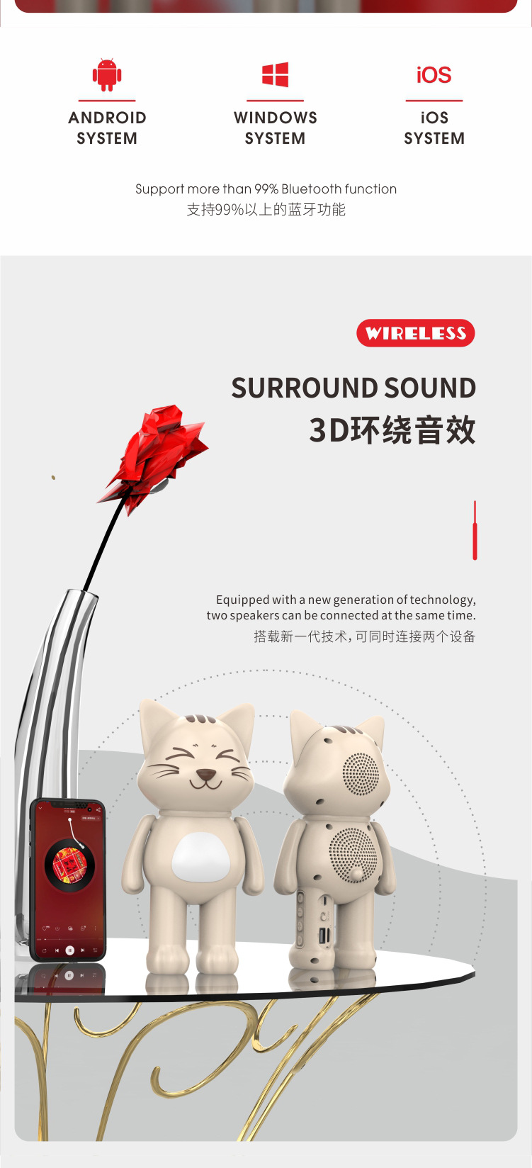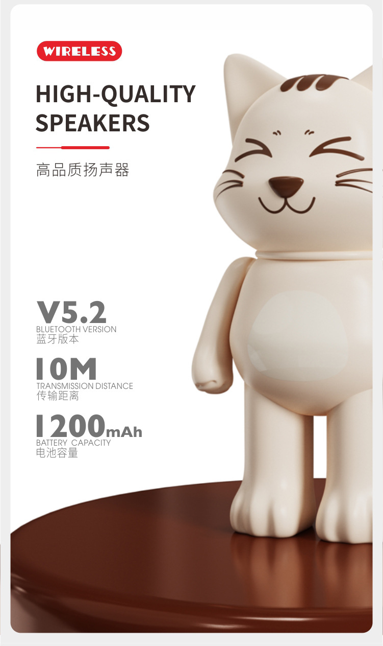 跨境新款无线蓝牙音箱创意可爱造型小猫家用桌面摆件礼品音响批发