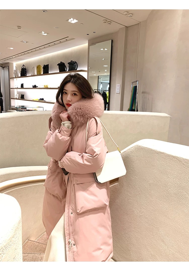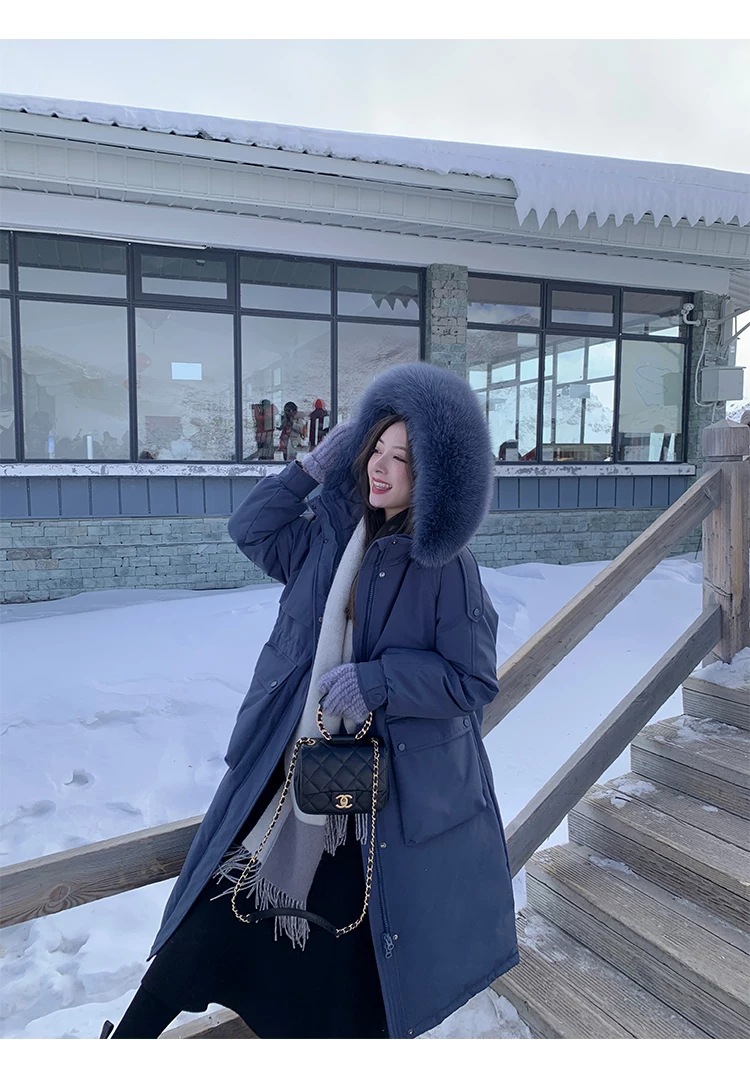 羽绒服女2023年新款冬中长款白鸭绒大毛领派克工装爆款加厚韩版潮