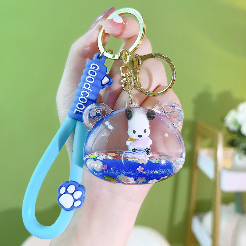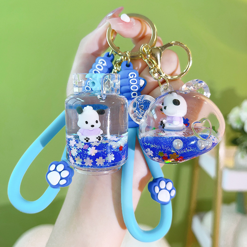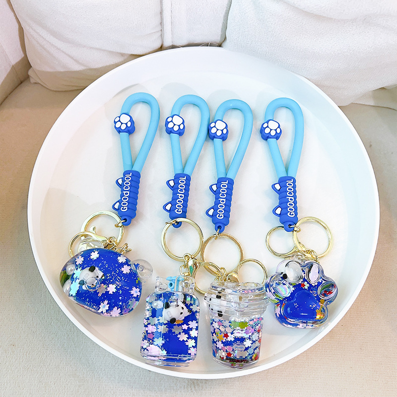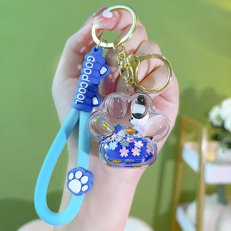 创意入油小狗熊掌钥匙扣精致可爱液体流沙挂件书包配饰小礼品批发