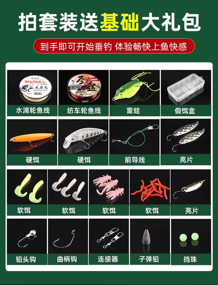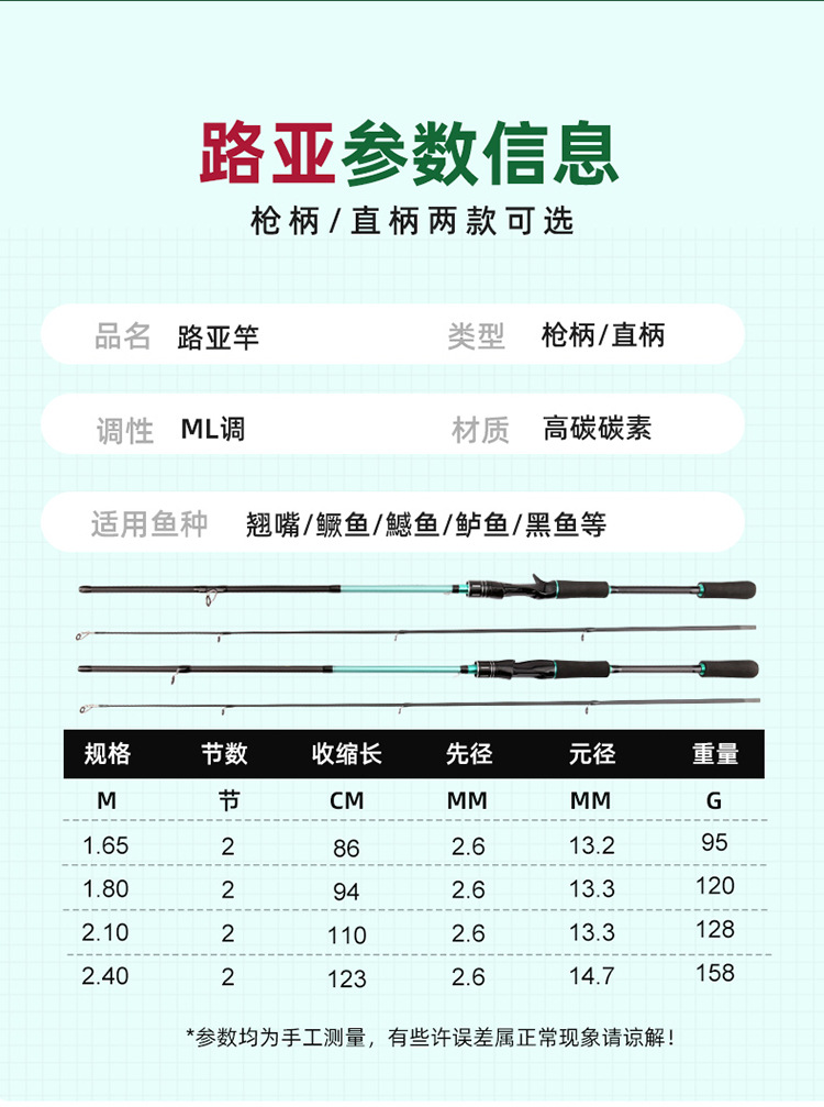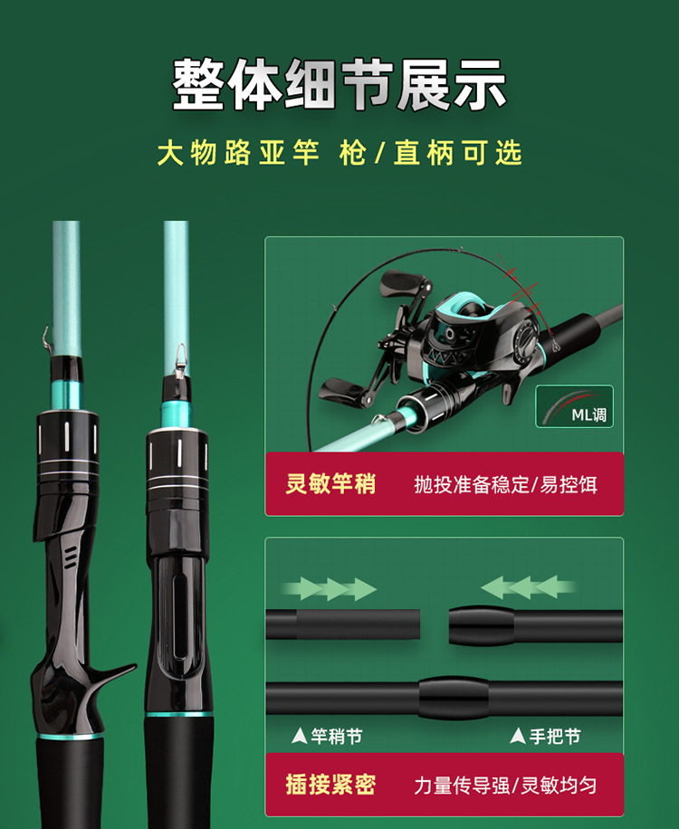 抖音热款路亚杆套装ML调鱼竿枪柄水滴轮直柄纺车轮路亚竿套装全套