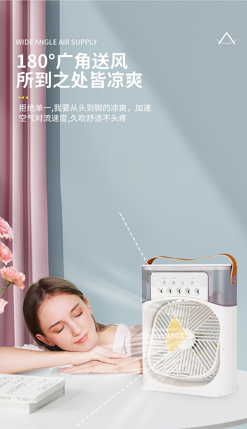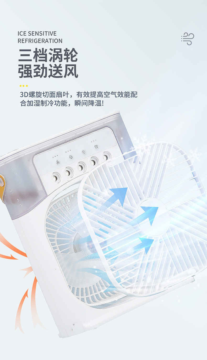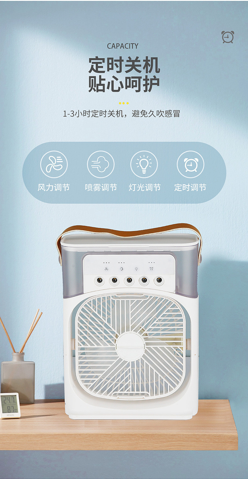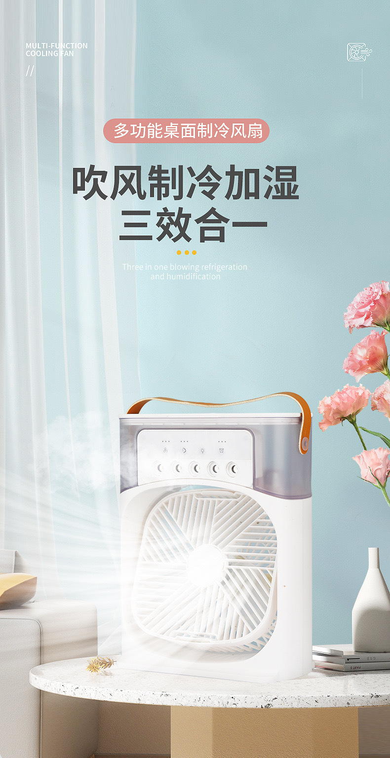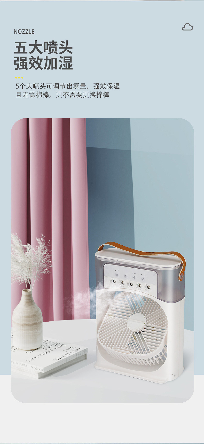 跨境5五孔喷雾风扇便携静音小空调冷风机桌面加湿风扇cooler fan