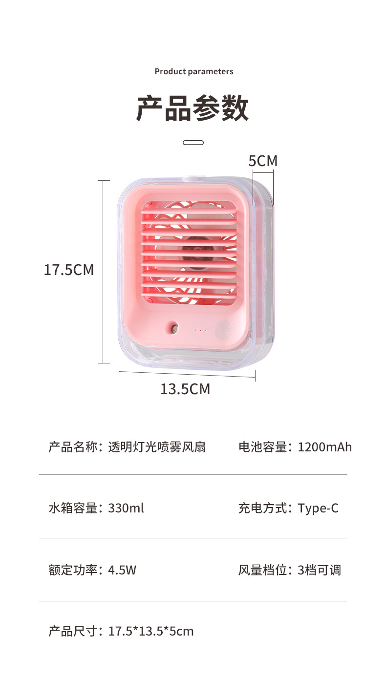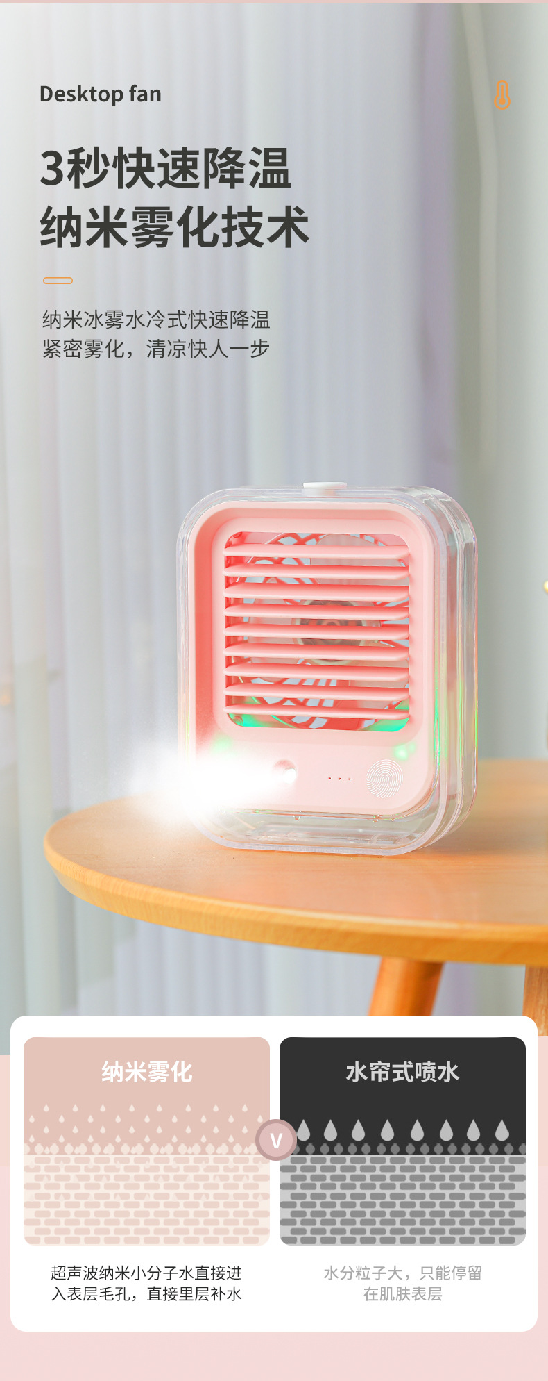 厂家直销跨境新款迷你冷风扇 usb便携冷风机桌面静音喷雾水冷空调