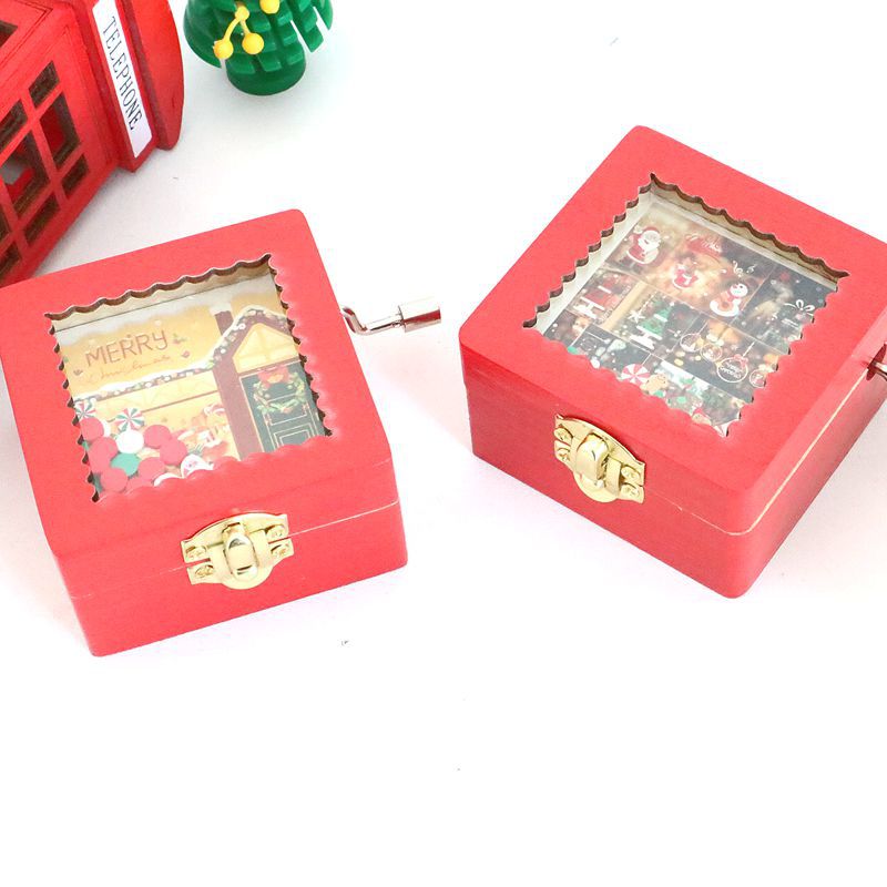 圣诞手摇音乐盒 木质八音盒 创意礼品 圣诞节赠送礼物 文艺风