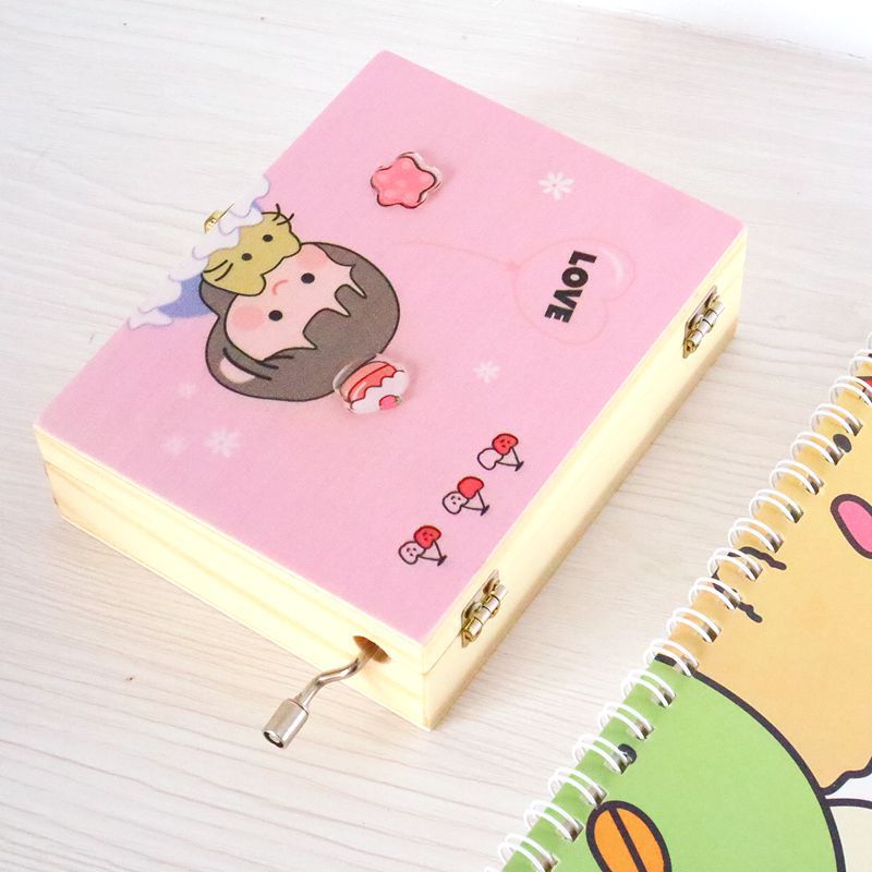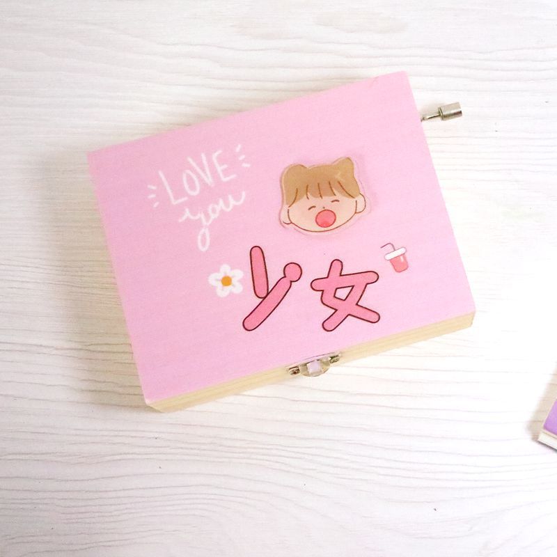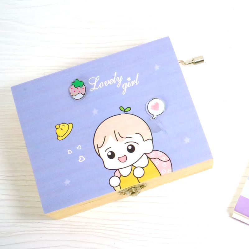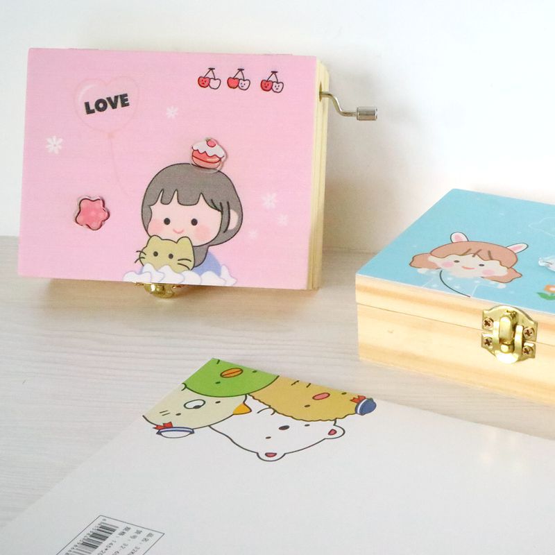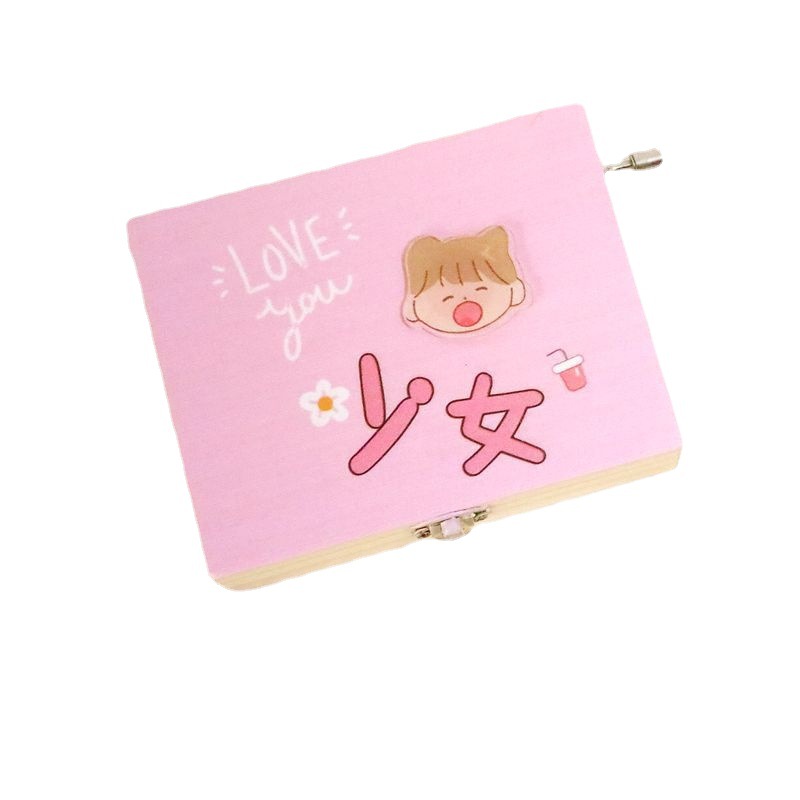 卡通少女收纳盒木质手摇八音盒桌面创意礼品学生生日礼物家居简约