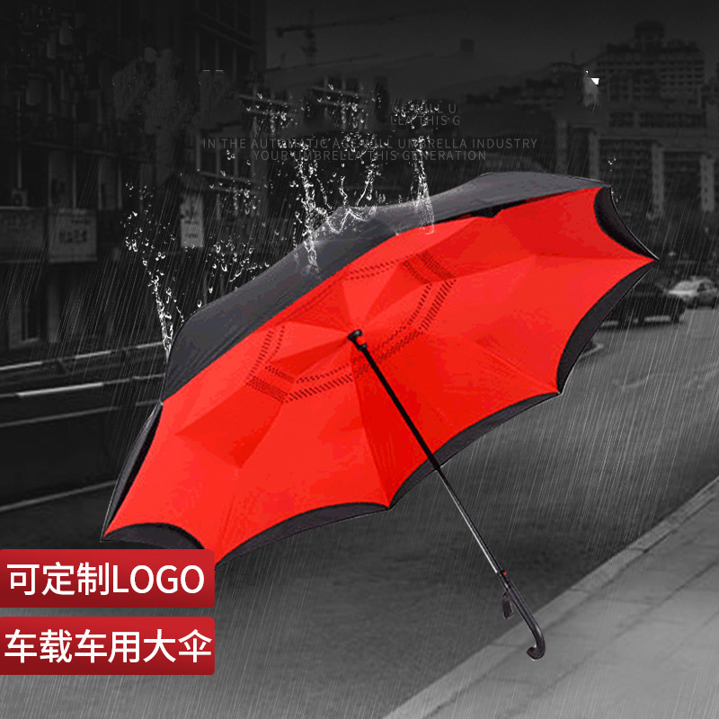 长柄反向伞广告印刷logo免持式C型双层雨伞车载专用抗风晴雨两用