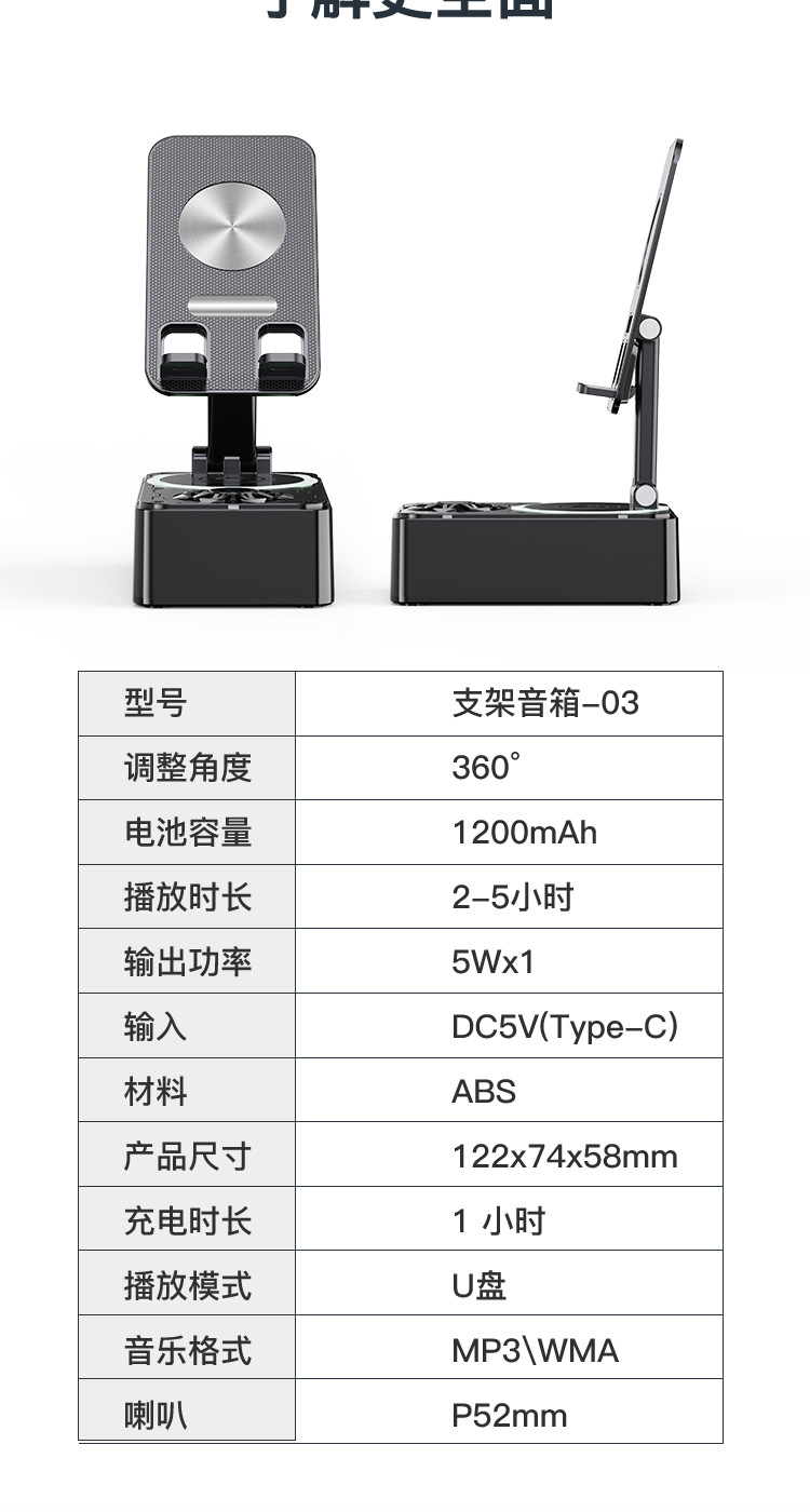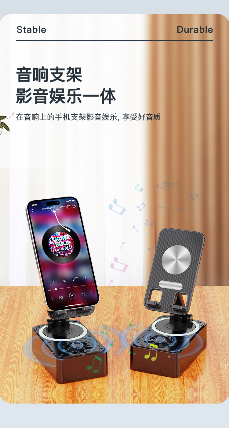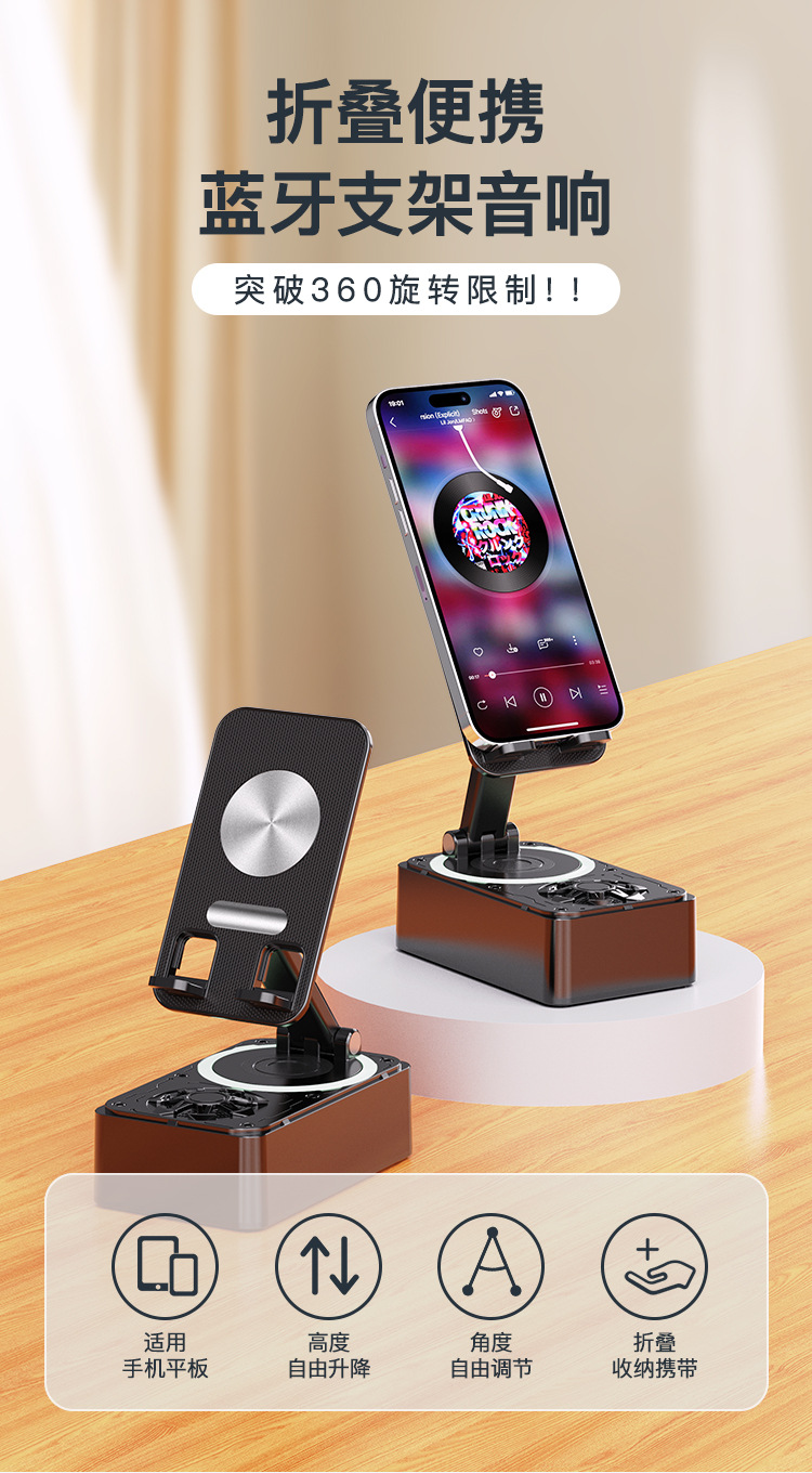 创意礼品音箱新款手机支架音响二合一旋转可折叠懒人直播桌面支架