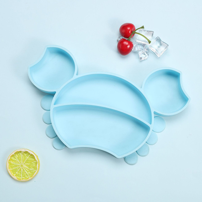 跨境新款卡通小螃蟹硅胶饭碗儿童硅胶餐盘吸盘碗宝宝学吃饭辅食碗