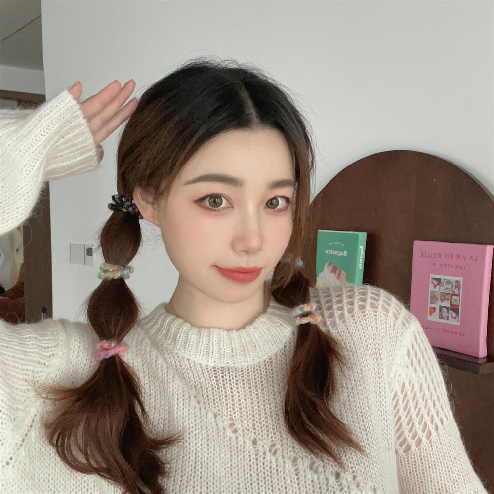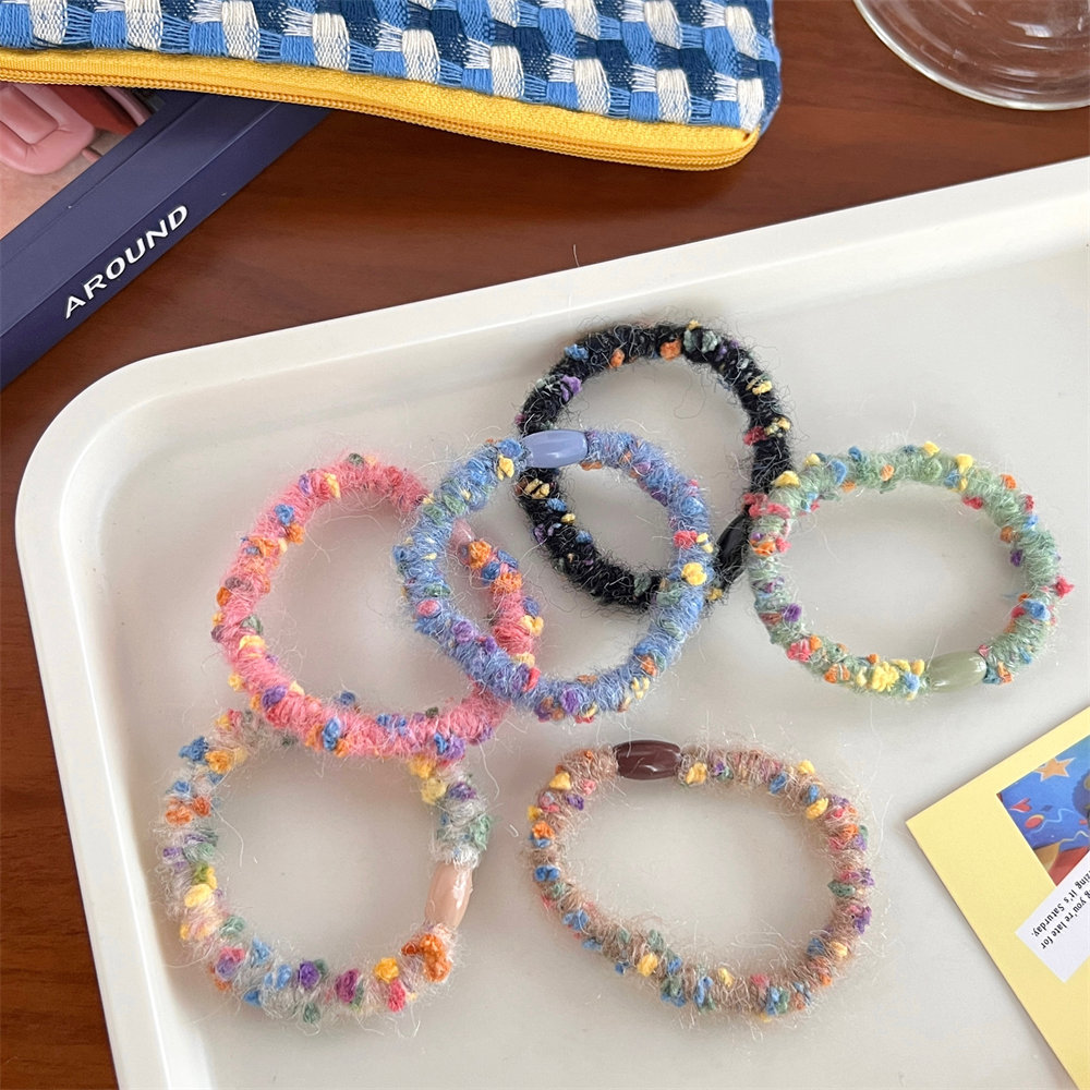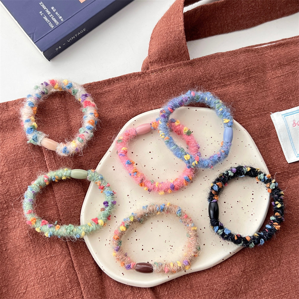 糖果色彩色点点毛线发圈发绳少女心毛绒发饰扎头发橡皮筋头绳批发