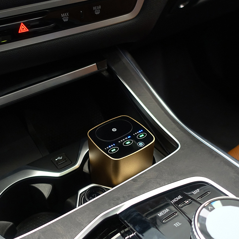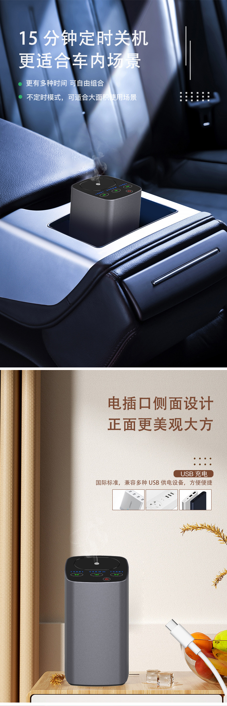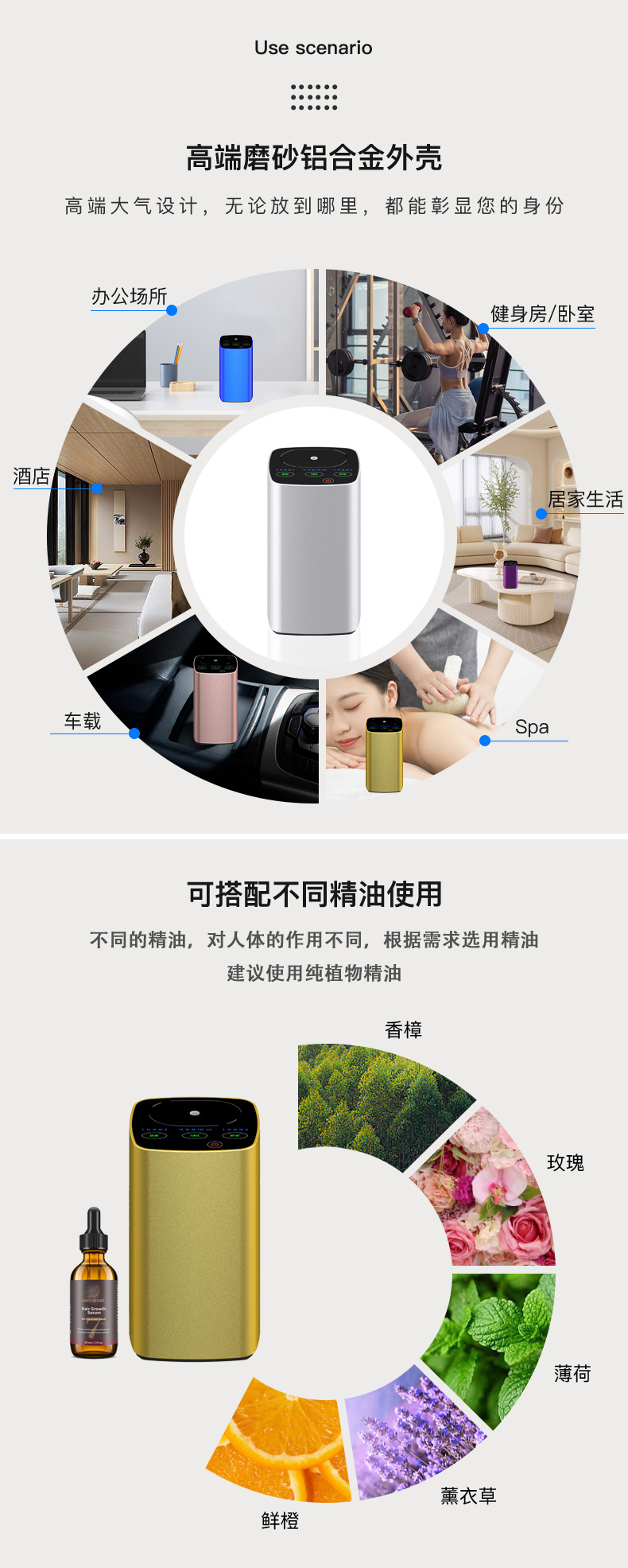 铝合金车载香薰机智能持久淡香纯精油平面超椭圆形线条香氛机现货