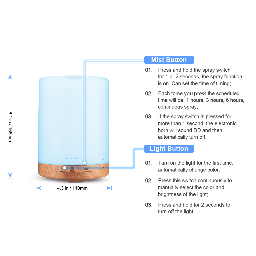 Diffuser300ml木纹精油扩散器 家用冷雾香薰机 便携LED七彩香薰灯