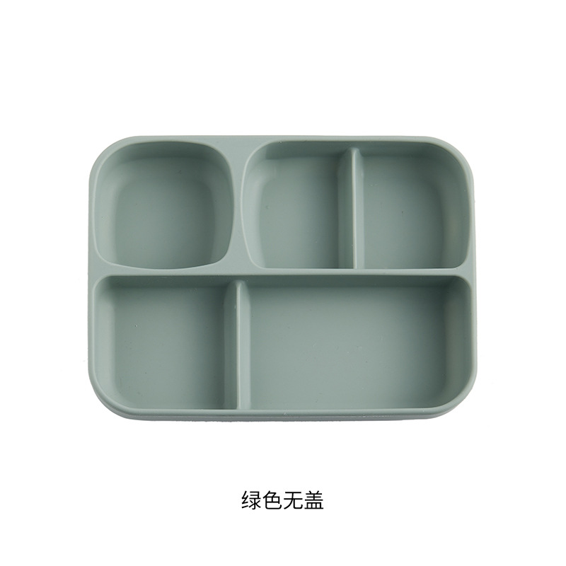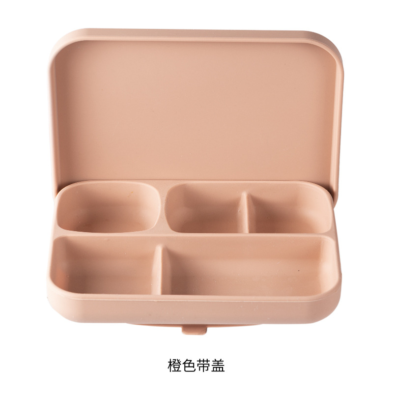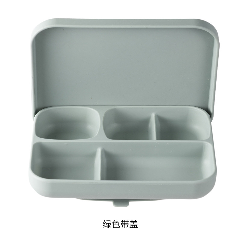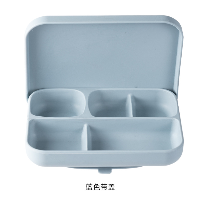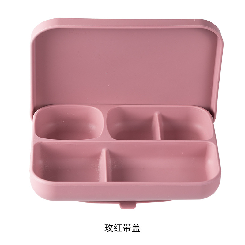 亚马逊韩国儿童宝宝硅胶餐盘盒带盖方型一体式吸盘辅食碗婴儿餐具