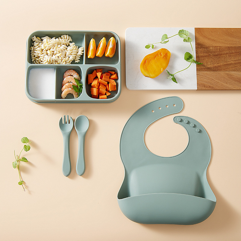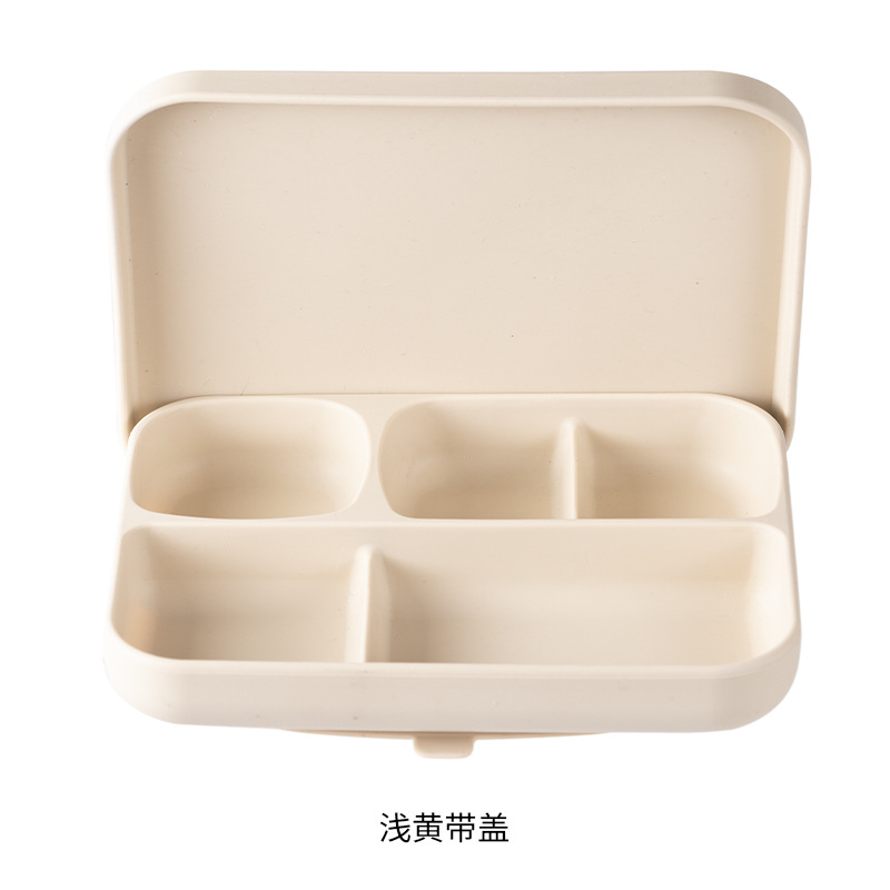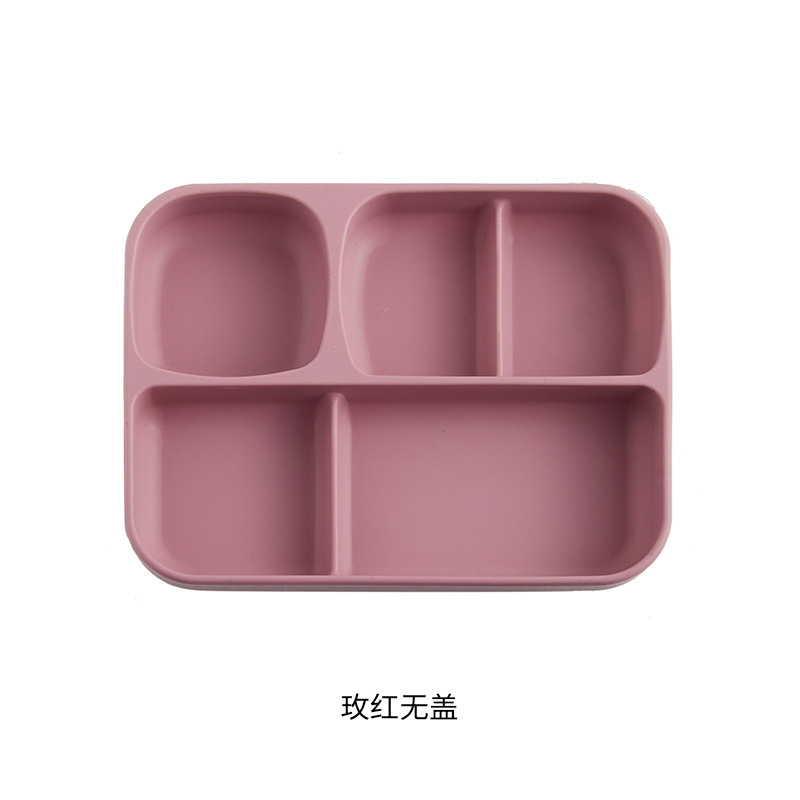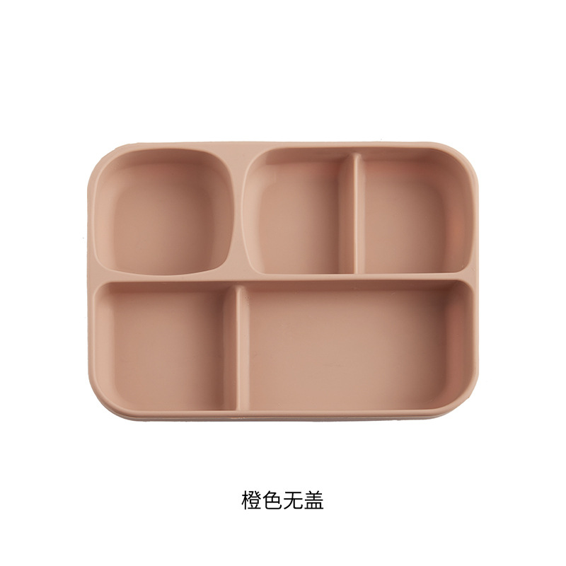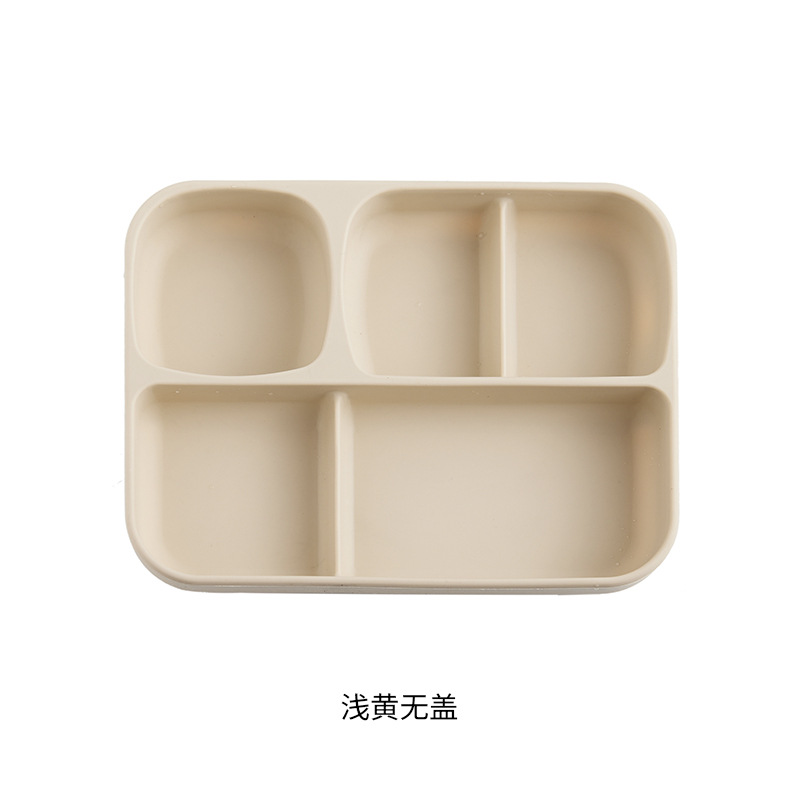 亚马逊韩国儿童宝宝硅胶餐盘盒带盖方型一体式吸盘辅食碗婴儿餐具