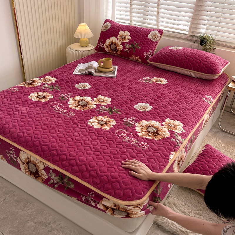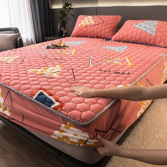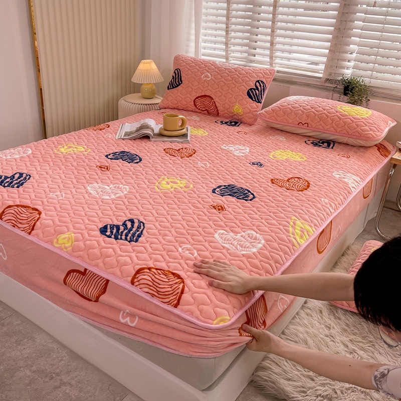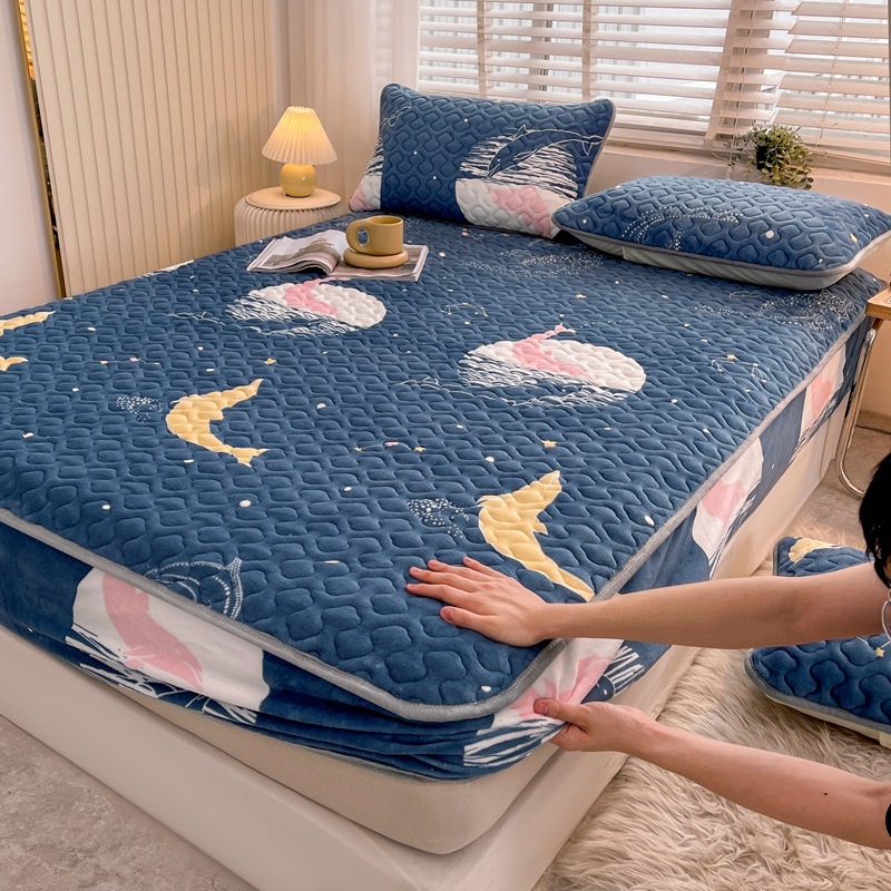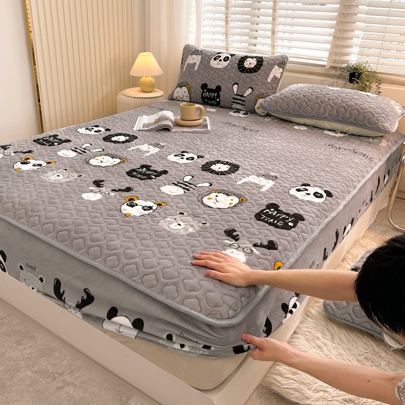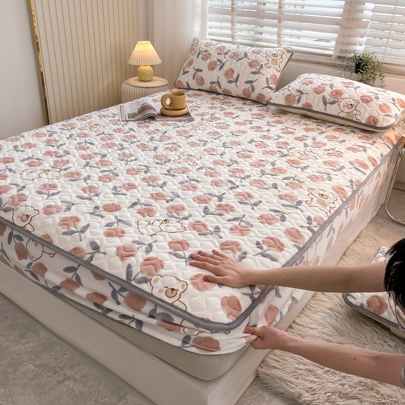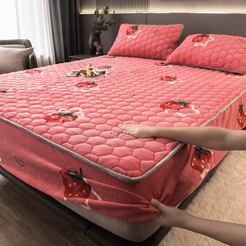 牛奶绒加厚夹棉床笠单件加绒防滑固定全包床单罩席梦思床垫保护套