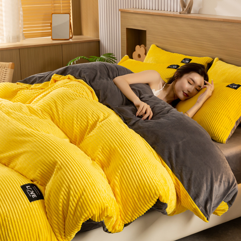 四件套批发法莱绒珊瑚绒牛奶绒纯色水晶绒魔法绒四件套被套批发