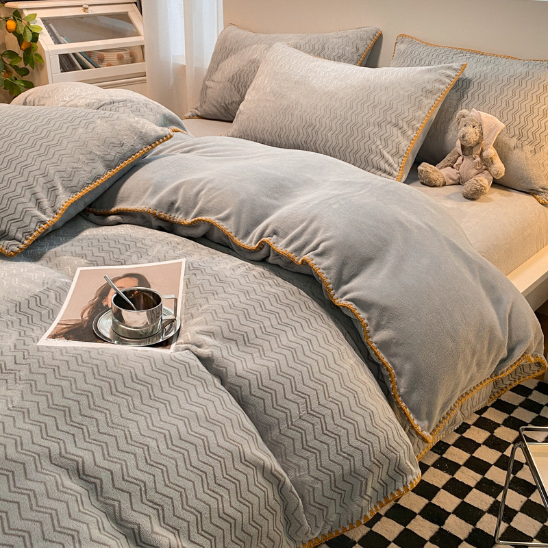 牛奶绒四件套批发冬保暖珊瑚绒床单被套法兰绒床上用品加厚三件套