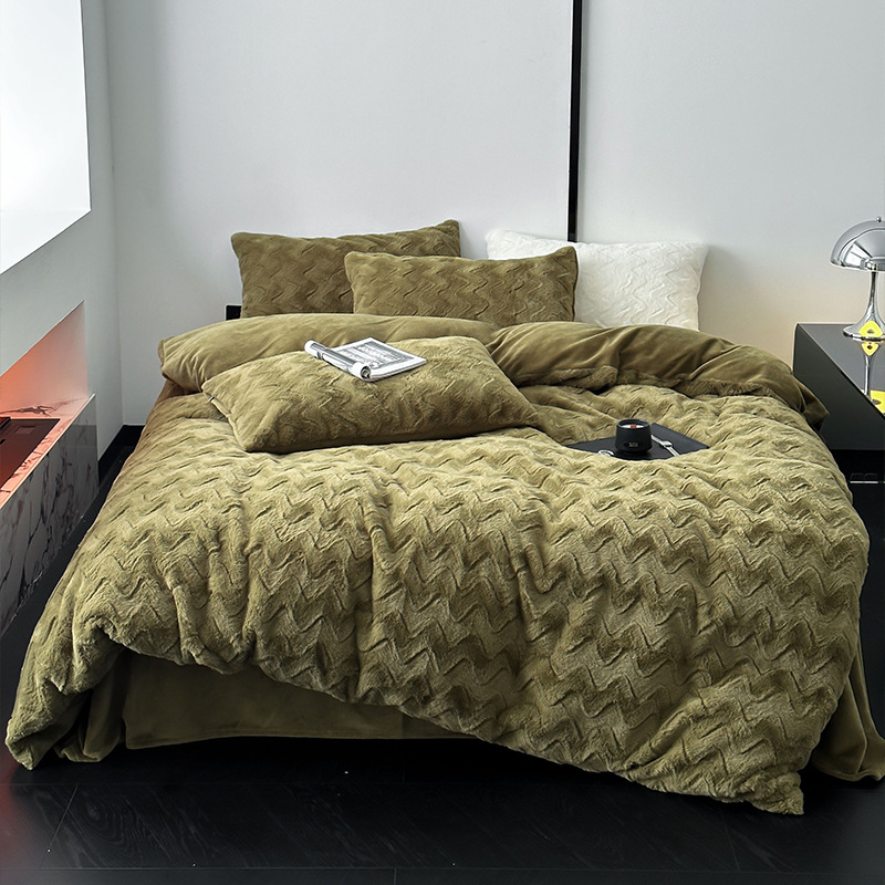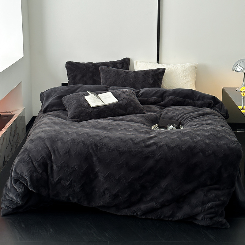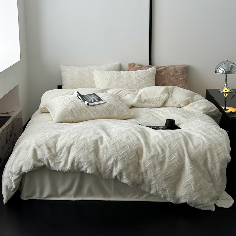 四件套兔毛绒牛奶绒a类不掉毛简约轻奢ins风秋冬保暖纯色被套床单